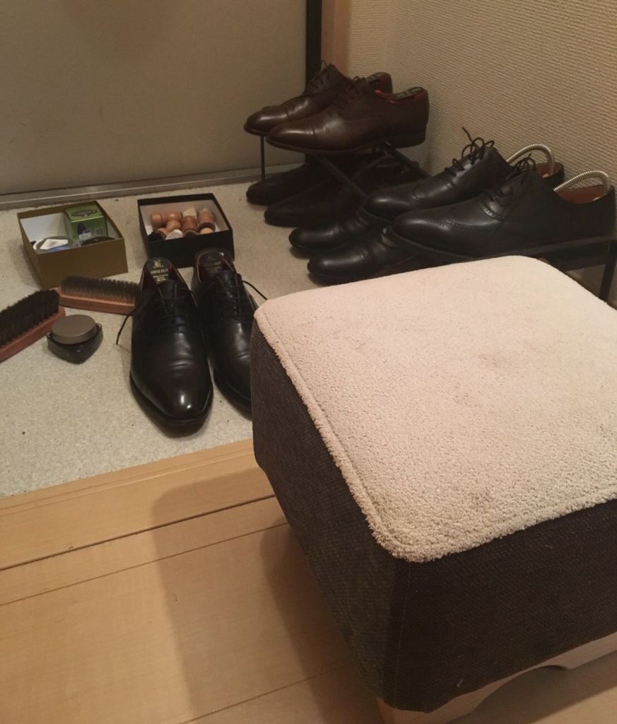 玄関での靴磨きに!地面にモノを置いて作業するときにぴったり!