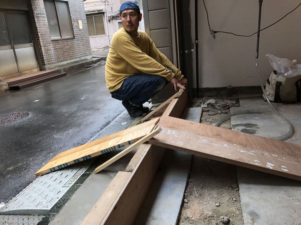 家具屋さんで工務店さんでリノベーションマスターなお友達、WORKSHOPの小坂さん(社長)です。前回のタニヨンベースのフルリノベーションで相当に苦しんだ僕は今回まず最初にSOSを出しましたよw