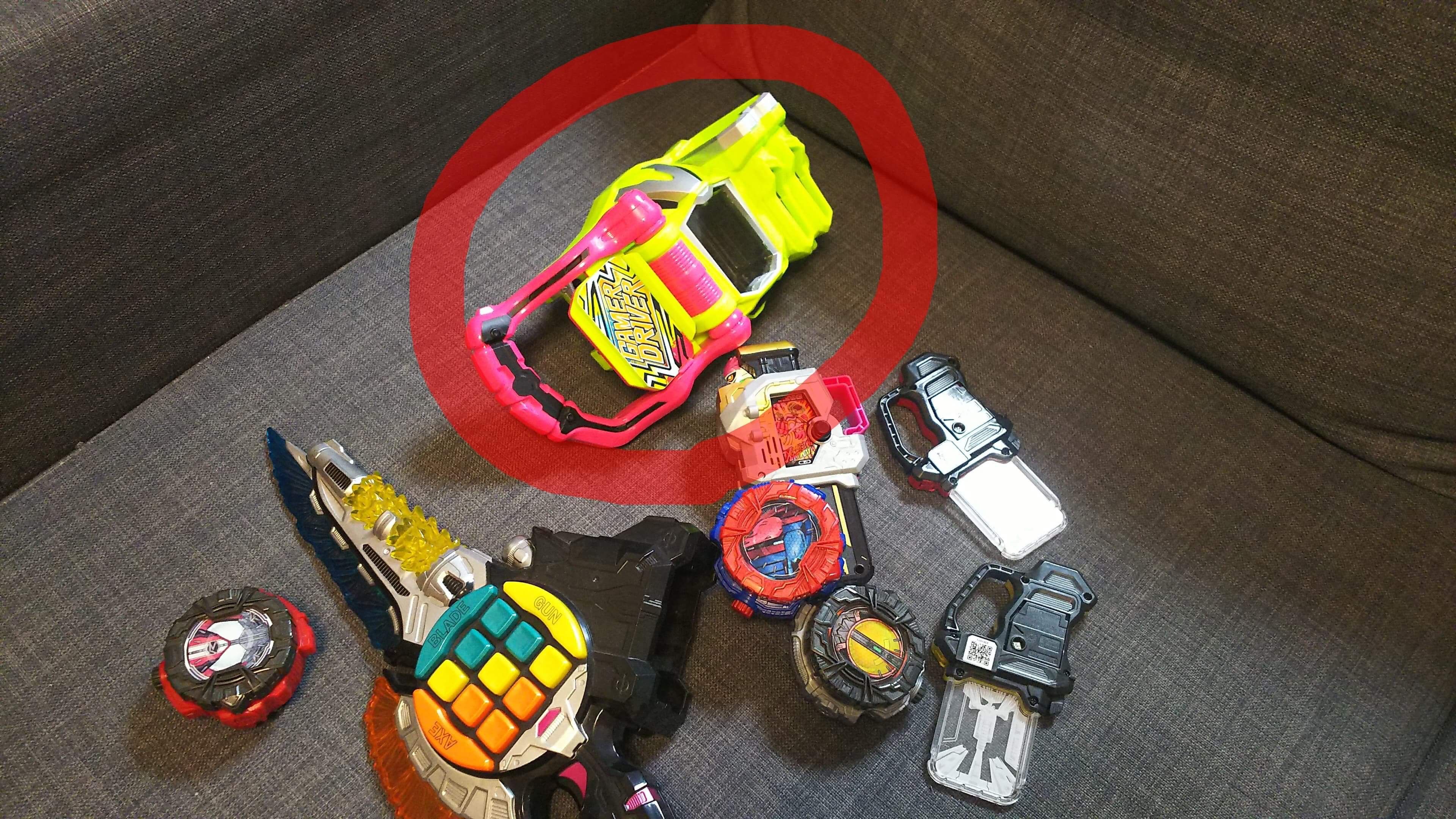 今日もソファーの上にライダーのベルトや武器が出しっぱなしです。