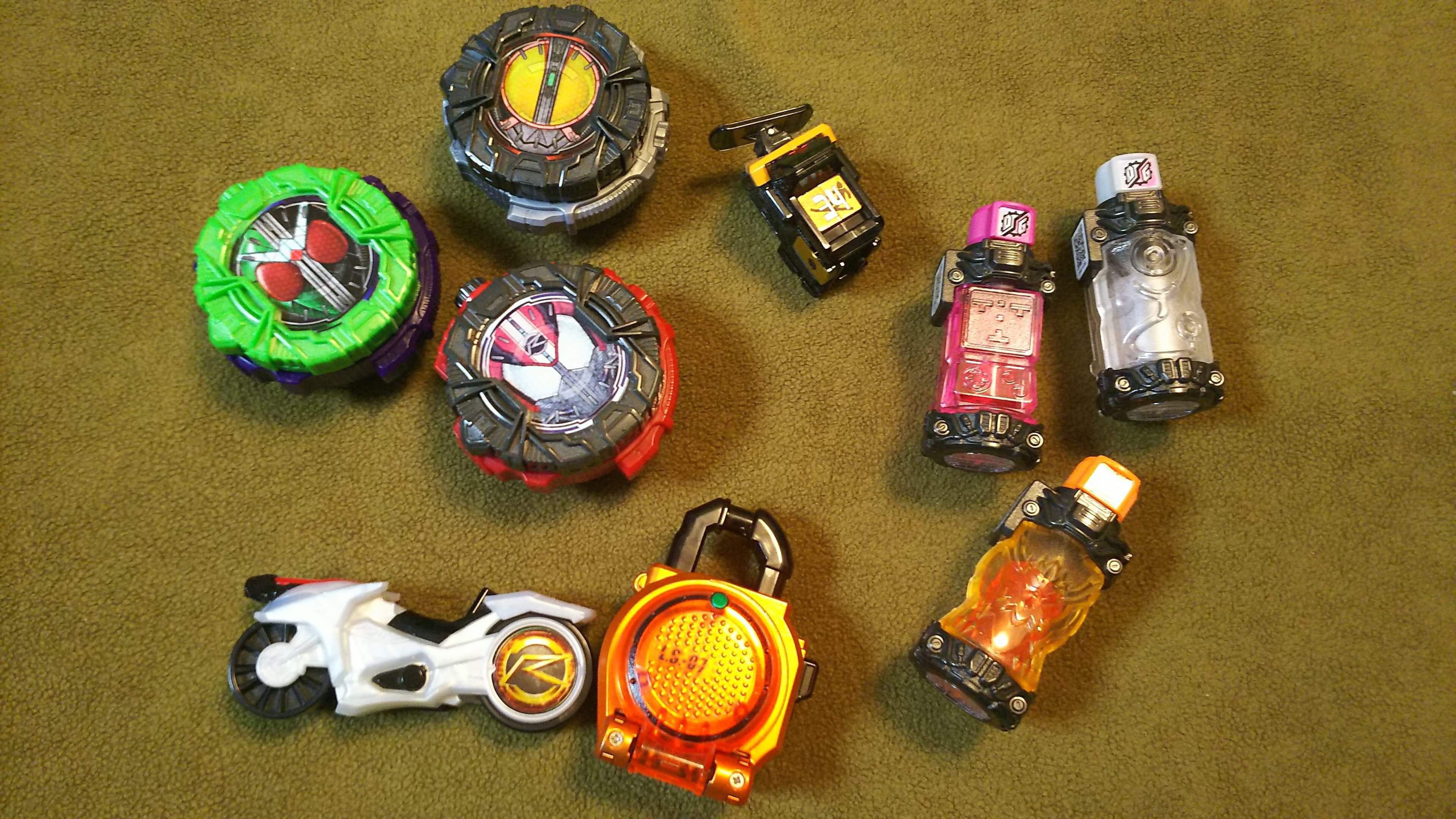 メダルとか指輪とか錠前とか、何かそういう小物をはめ込んだりセンサーに反応させたりしないといけません。さらにはその小物がたくさんあって、種類によってライダーの姿や武器が変わったりもします。