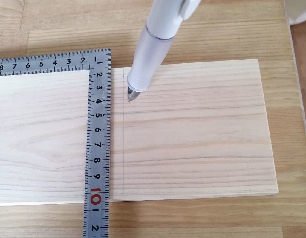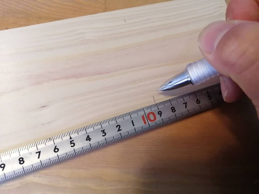 ちょっと見づらいですが、材料の上と下に9センチの印をつけて