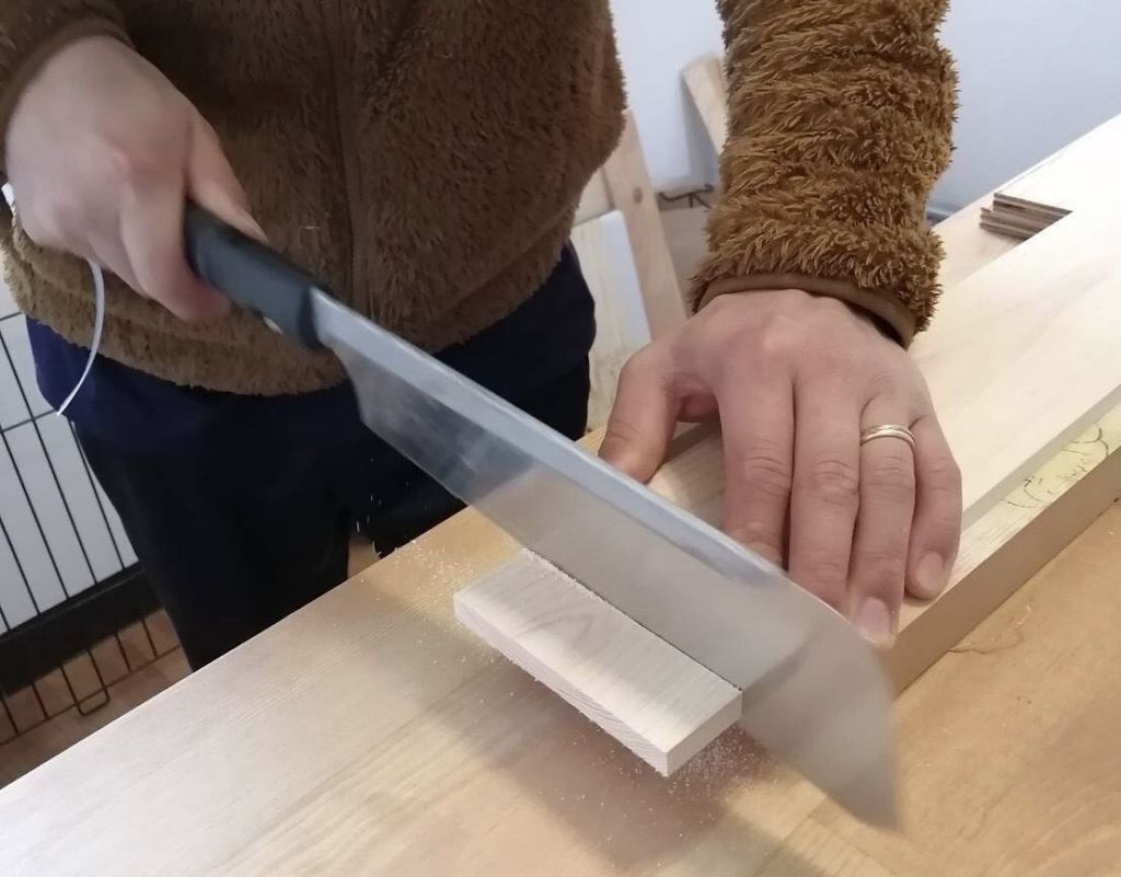 乾くのを待つ間に、先ほどと比べて小さい材料をカットしていきます。