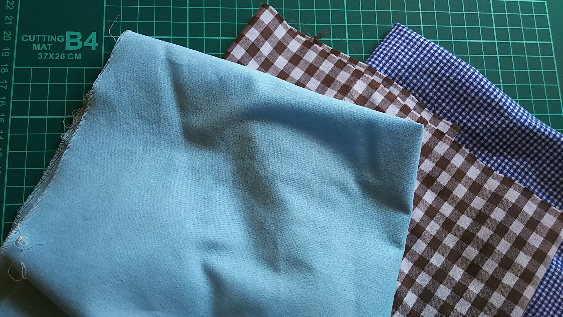 キャラクター物のかわいい生地もあったけど、さすがにそれは却下されたので表側は無地やチェックなどの無難なものに。