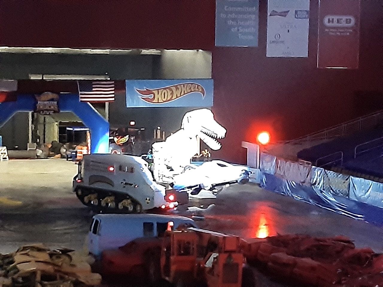突如会場に恐竜!宙高く舞うバイク!世にもド派手なカーアクション②