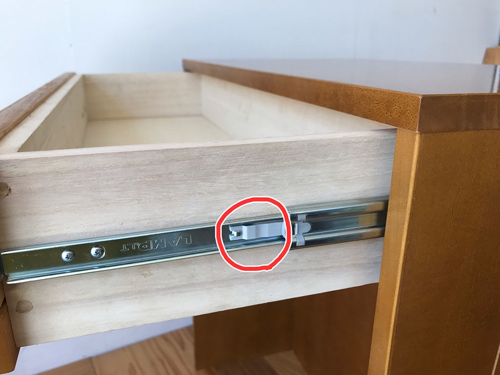 スライドレール式引き出し奥に物を落として困った時の脱着方法を解説