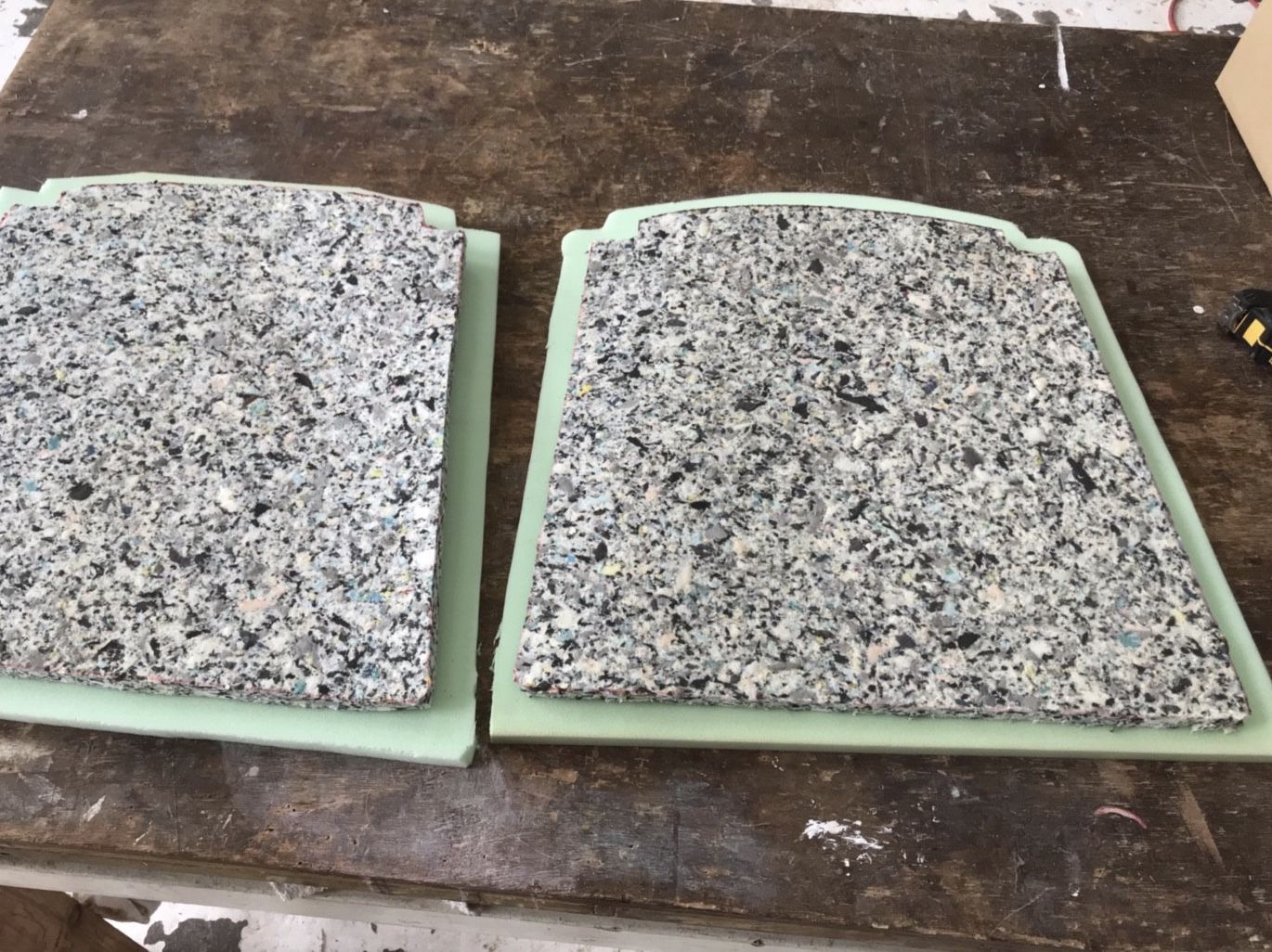 ちなみに、ROOTS FACTORYでは椅子の張り替えをご依頼いただいた時、内部クッション材の入れ替えなどもすることが多いんですけど、そういった時通常クッションを2層構造にして仕上げさせていただいてます。