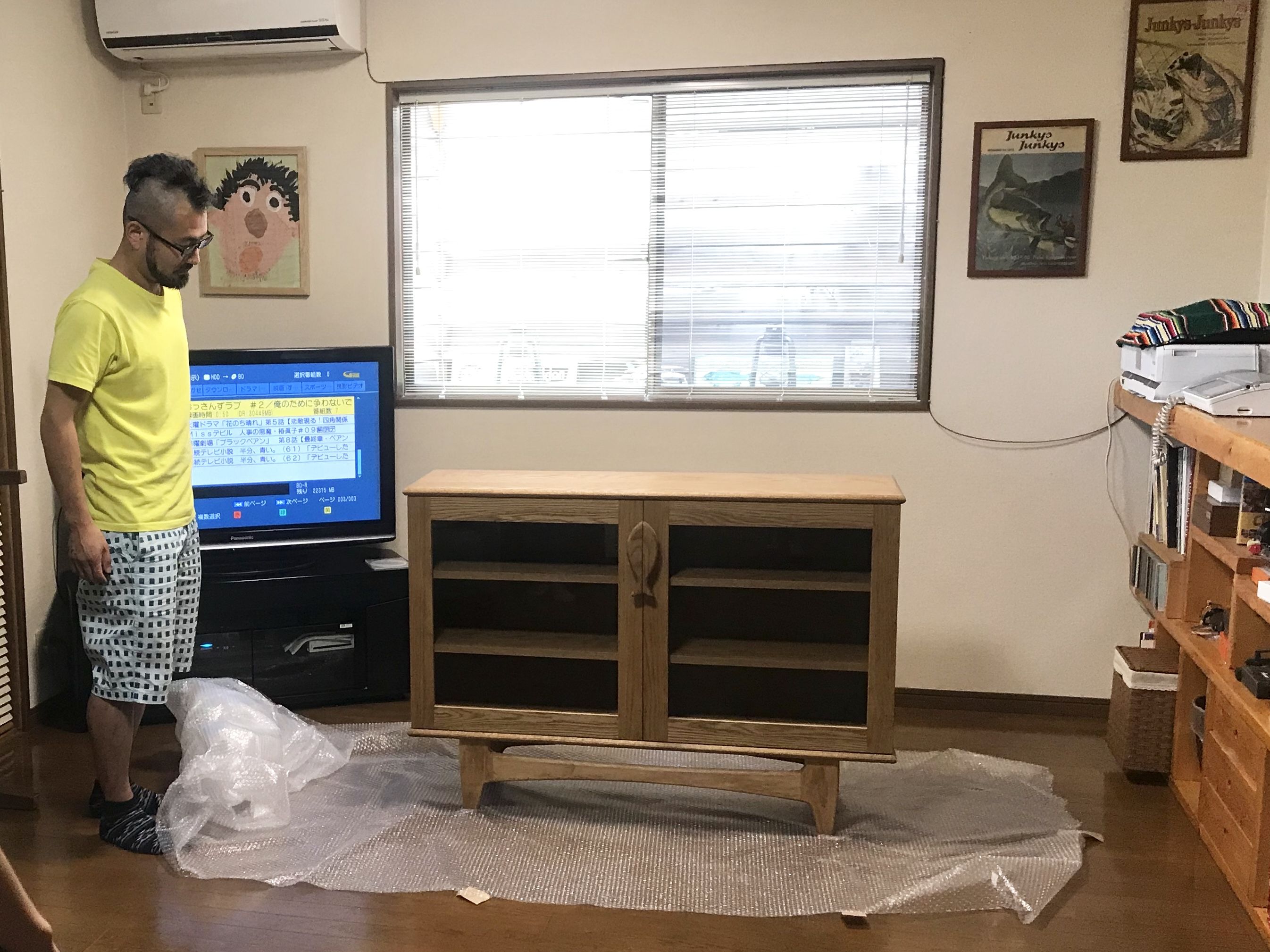 大きな大きな婚礼箪笥を、リビングのテレビ横に置けるコンパクトなキャビネットにリメイクしました!
