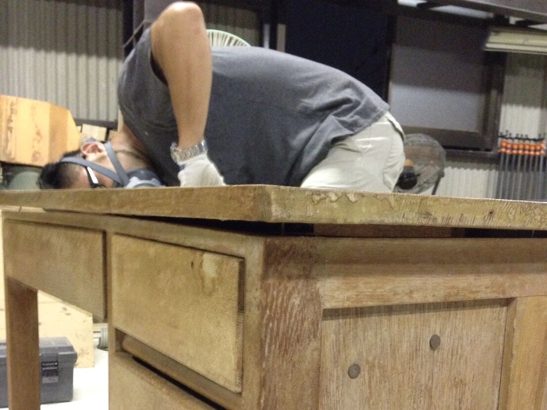 分解する時は、組まれた手順を考えて、逆順でバラしていくそうです。何しろ家具製作をしているから、組む手順も分かるんですね〜!