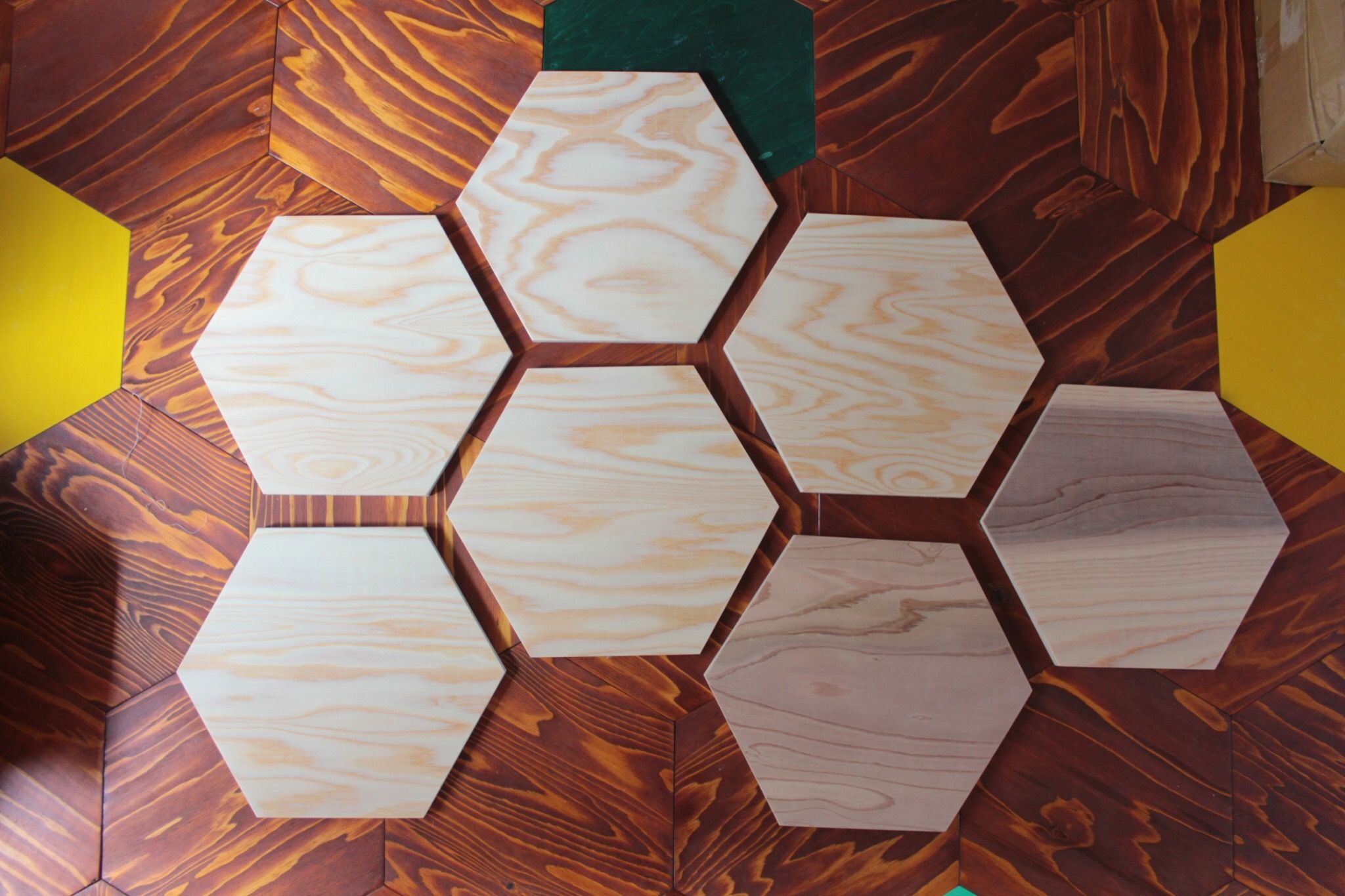 つなげていくと無限に広がる六角形!ワールドワイドにいろんな場所で活躍すること間違いなし☆すでに「家の床に貼ってみたい」、「お店をリノベーション中なんですけど、こんな床に仕上げたい」などのお声を多数いただいています、