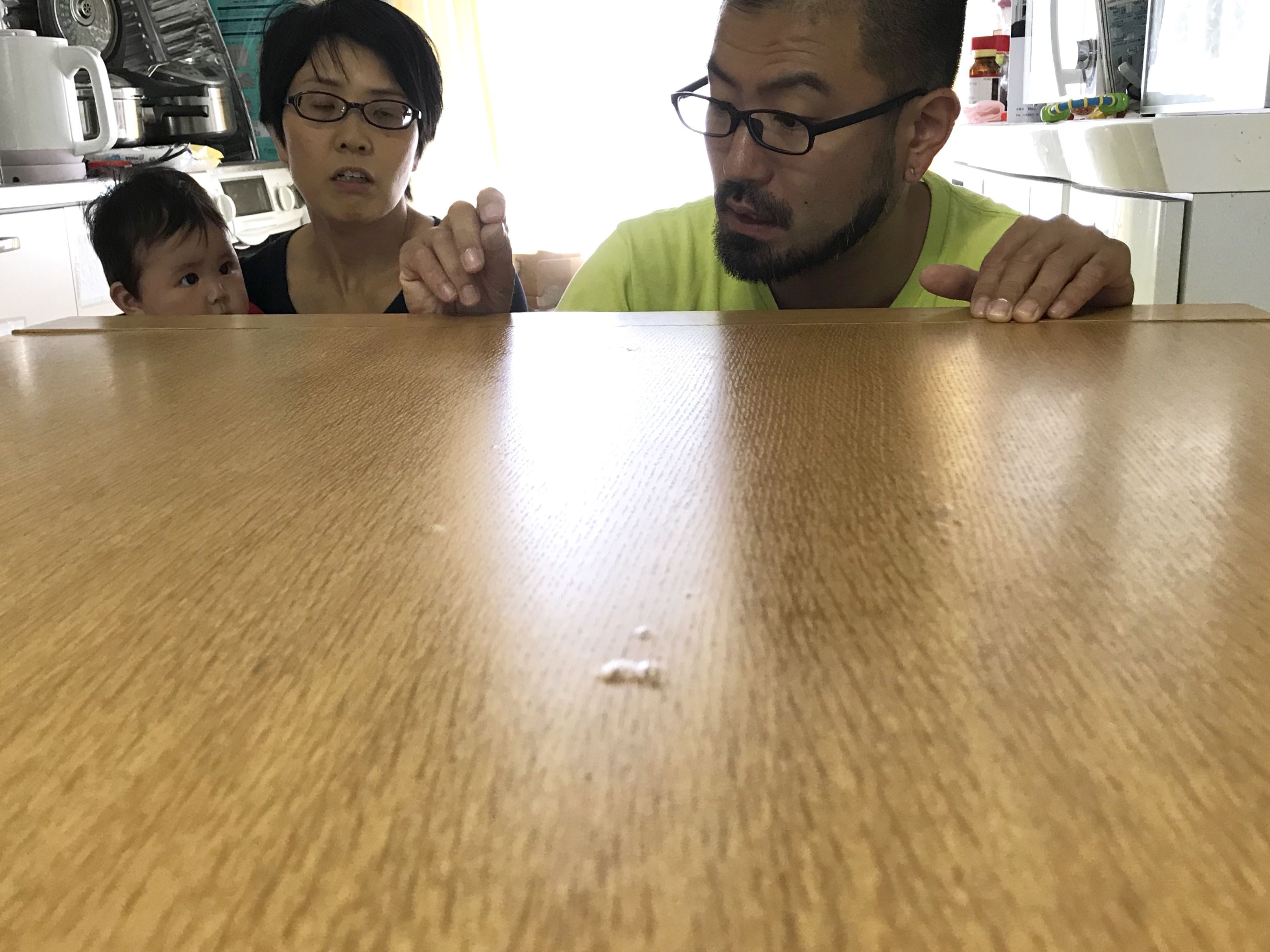 ↑芯材の膨張によって表面に膨らみができてしまったお客様の突き板テーブルをリメイクしたことも。