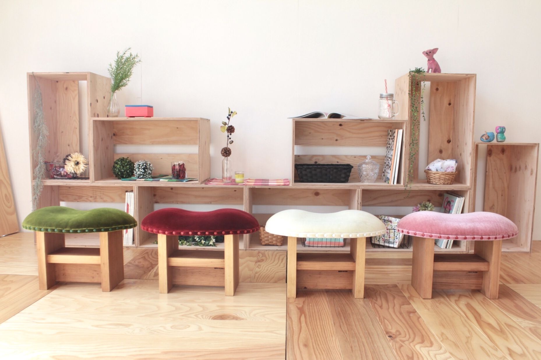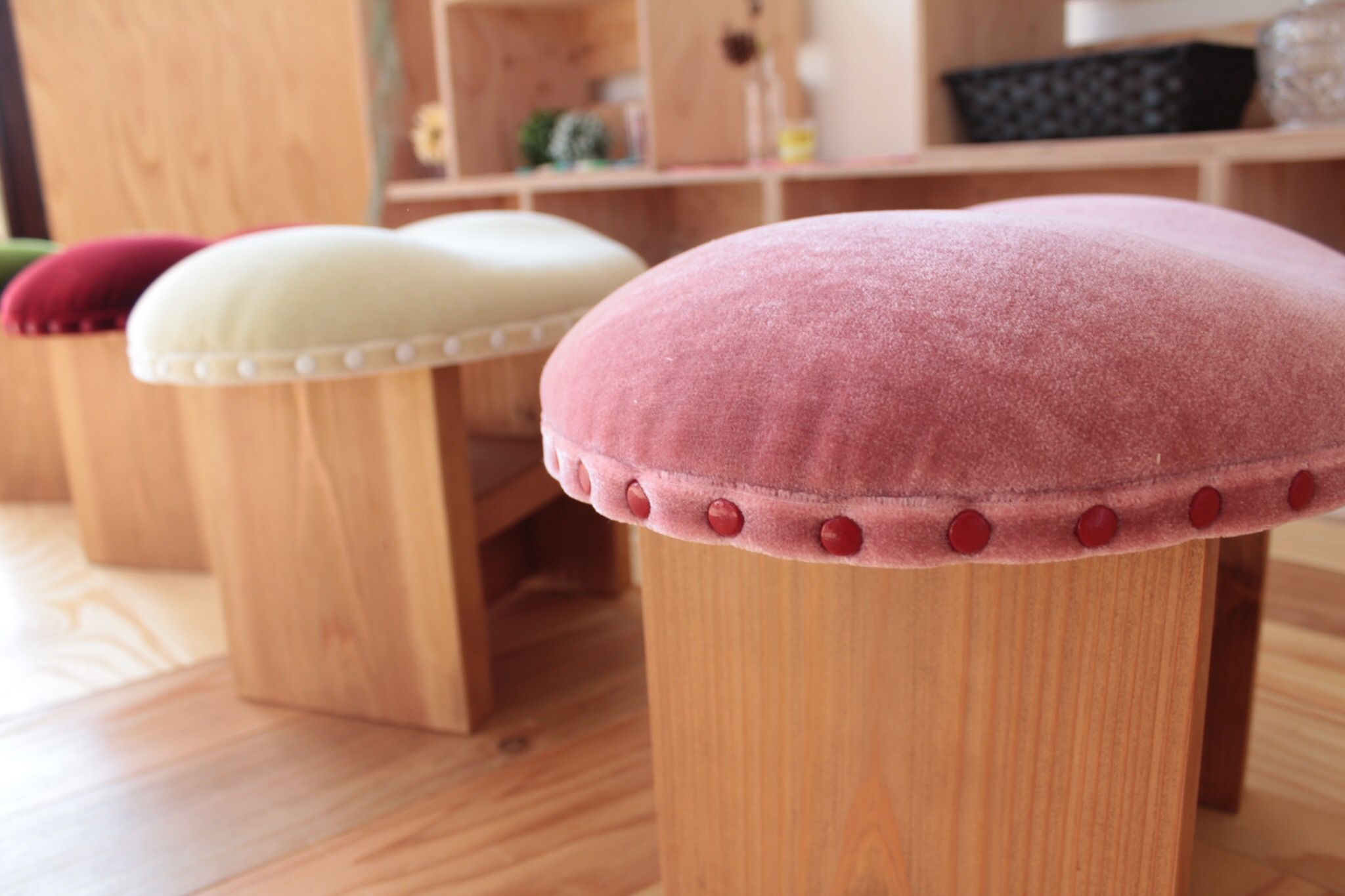 可愛らしくも見た目だけじゃないキノコスツール。どうぞ実際に見にいらしてくださいね〜!