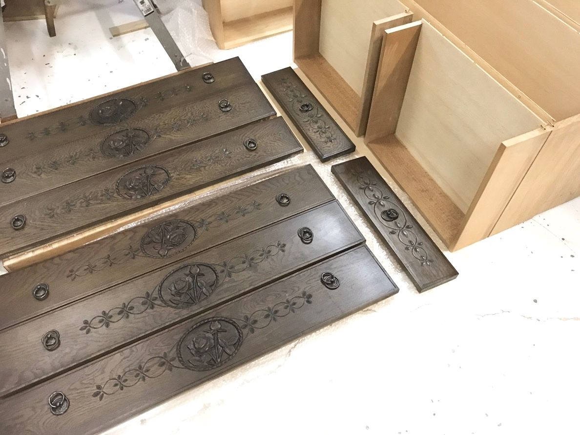 今回も「元の引き出しの色に合わせて欲しい」とお客様からご要望いただいたので、おっさん頑張りました。