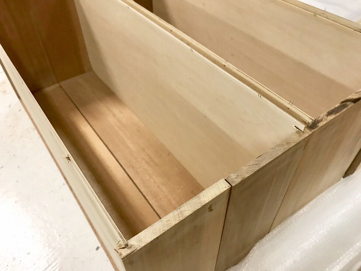 昔ながらの家具はそういうことが多いみたいなんですけど(機械の加工精度があんまり良くないからだとか)、引き出しそれぞれのサイズが違ったり、直角も微妙に直角でなかったり、そのまま使おうとするとガッタガタなってしまうそうです。
