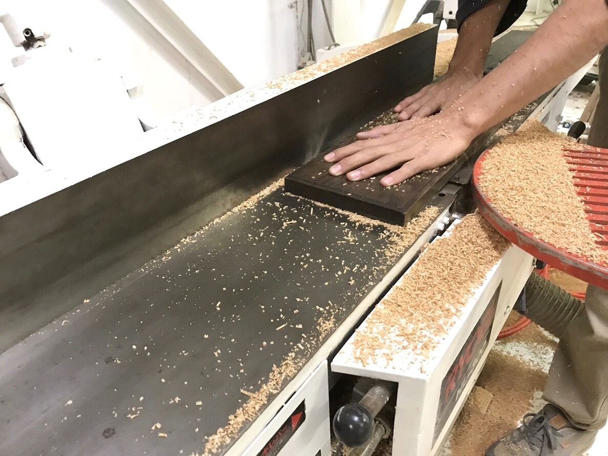 ちなみに、こちらの機械は「手押し」という鉋(カンナ)の機械です。