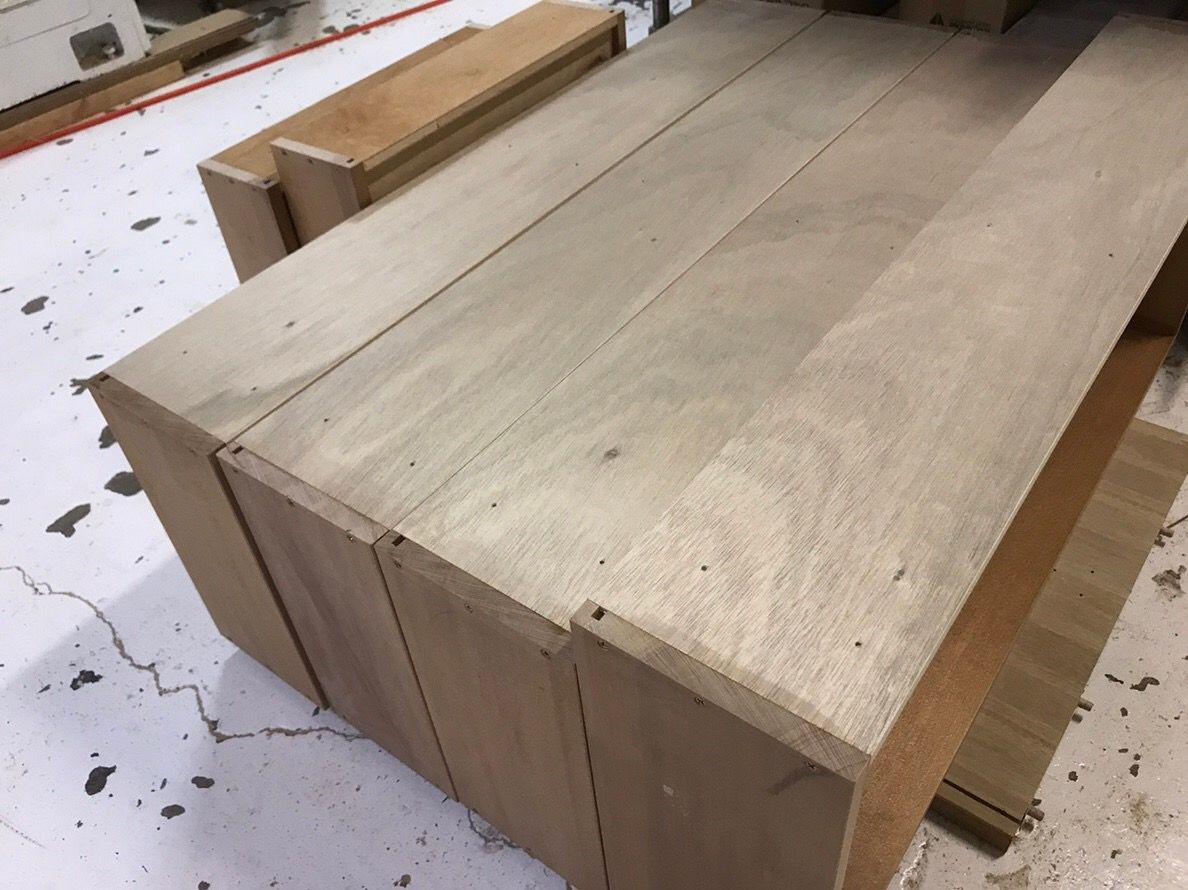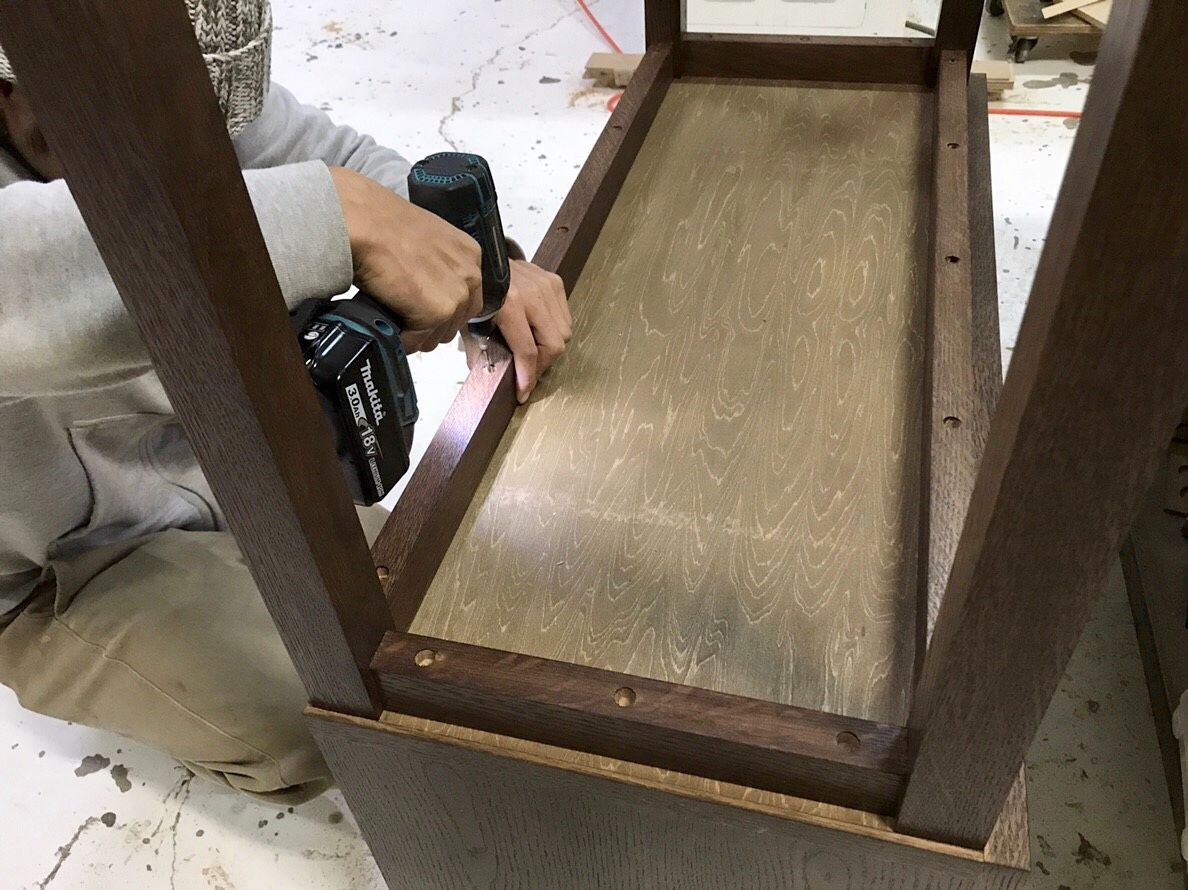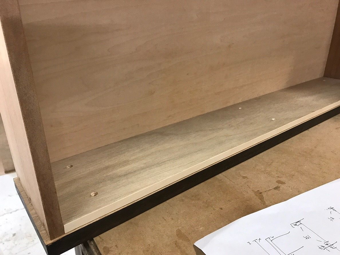 また、仕上がりの外寸と引き出し内寸を確保する為には、引き出し前板を少し薄くして、平らに整える必要がありました。
