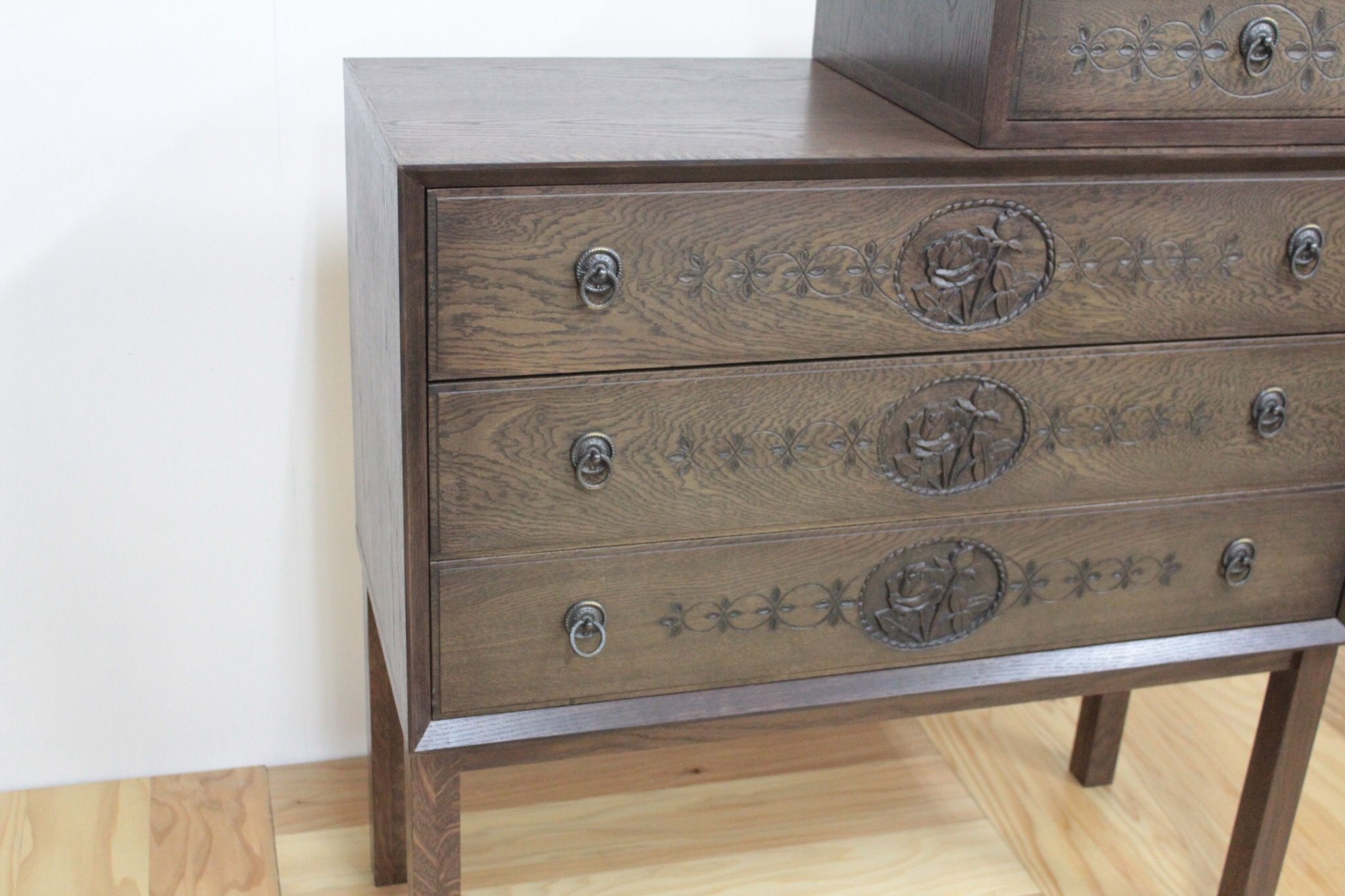 前回、お客様のお母様が手彫りされたという美しい彫刻のタンスをリメイクしたことについてご紹介しました。
