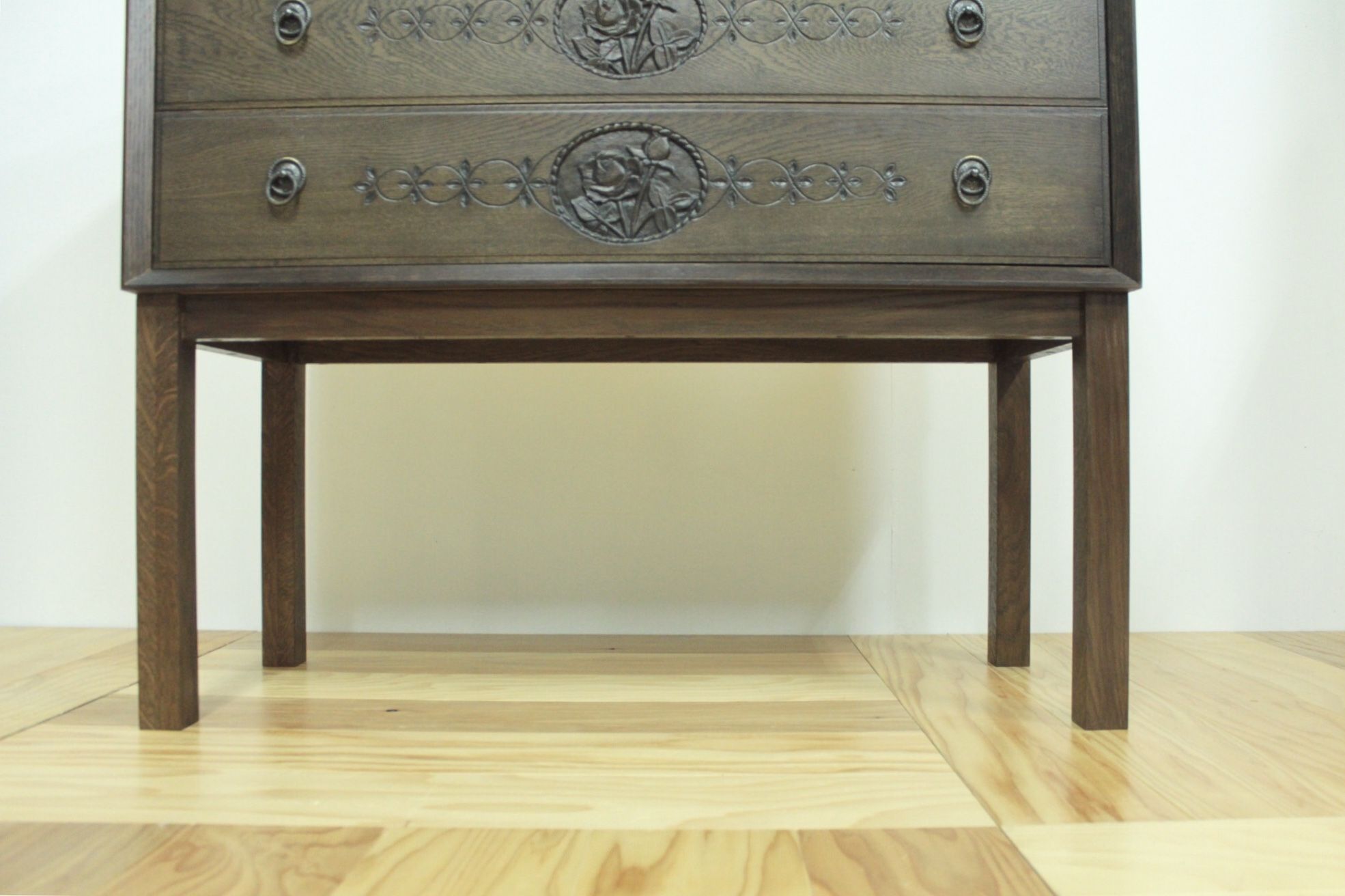 脚元スペースたっぷりの脚付きチェスト、強度やバランスを考慮