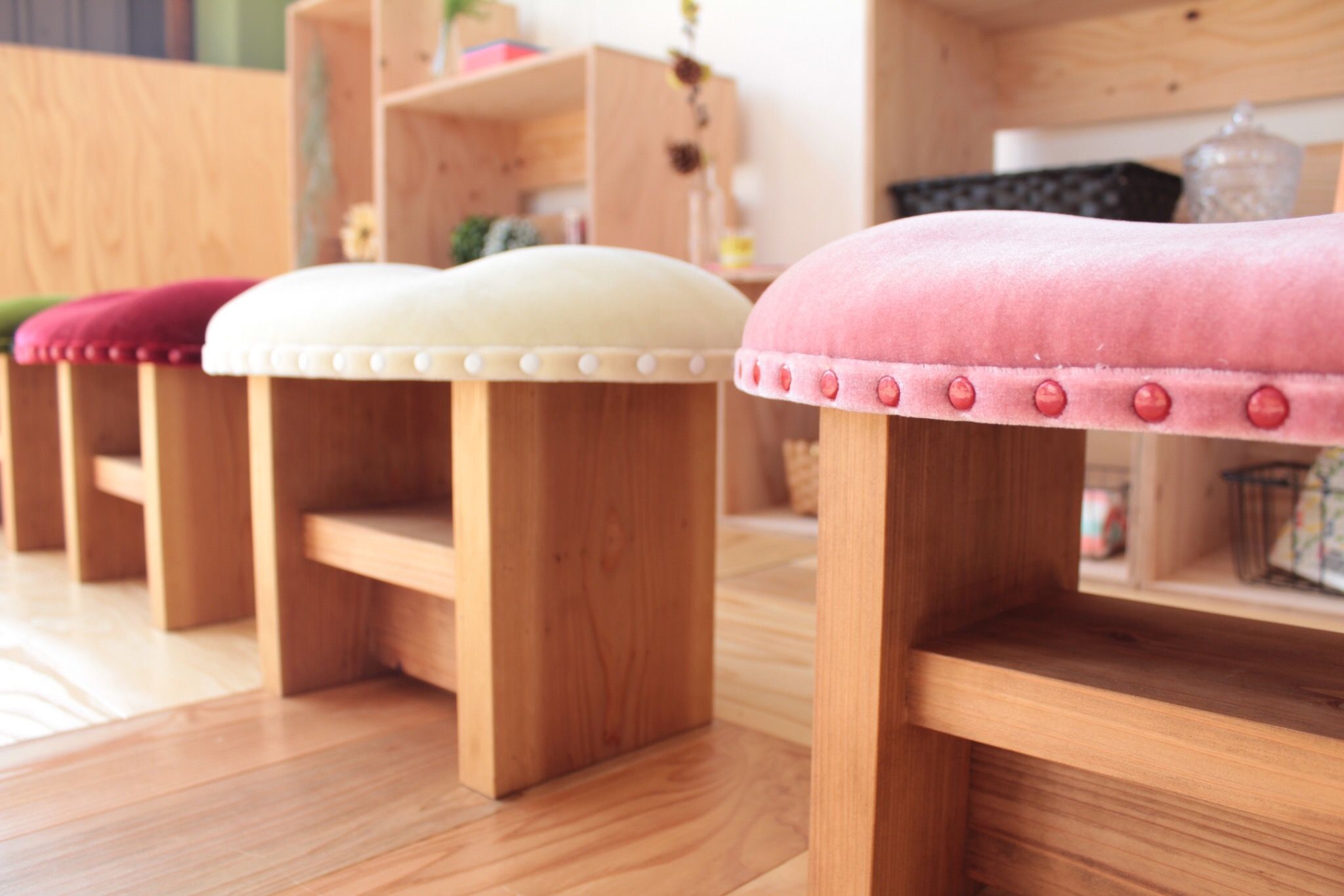 杉の柔らかい質感が、ふっくら可愛い形の座面と相性バッチリ。
