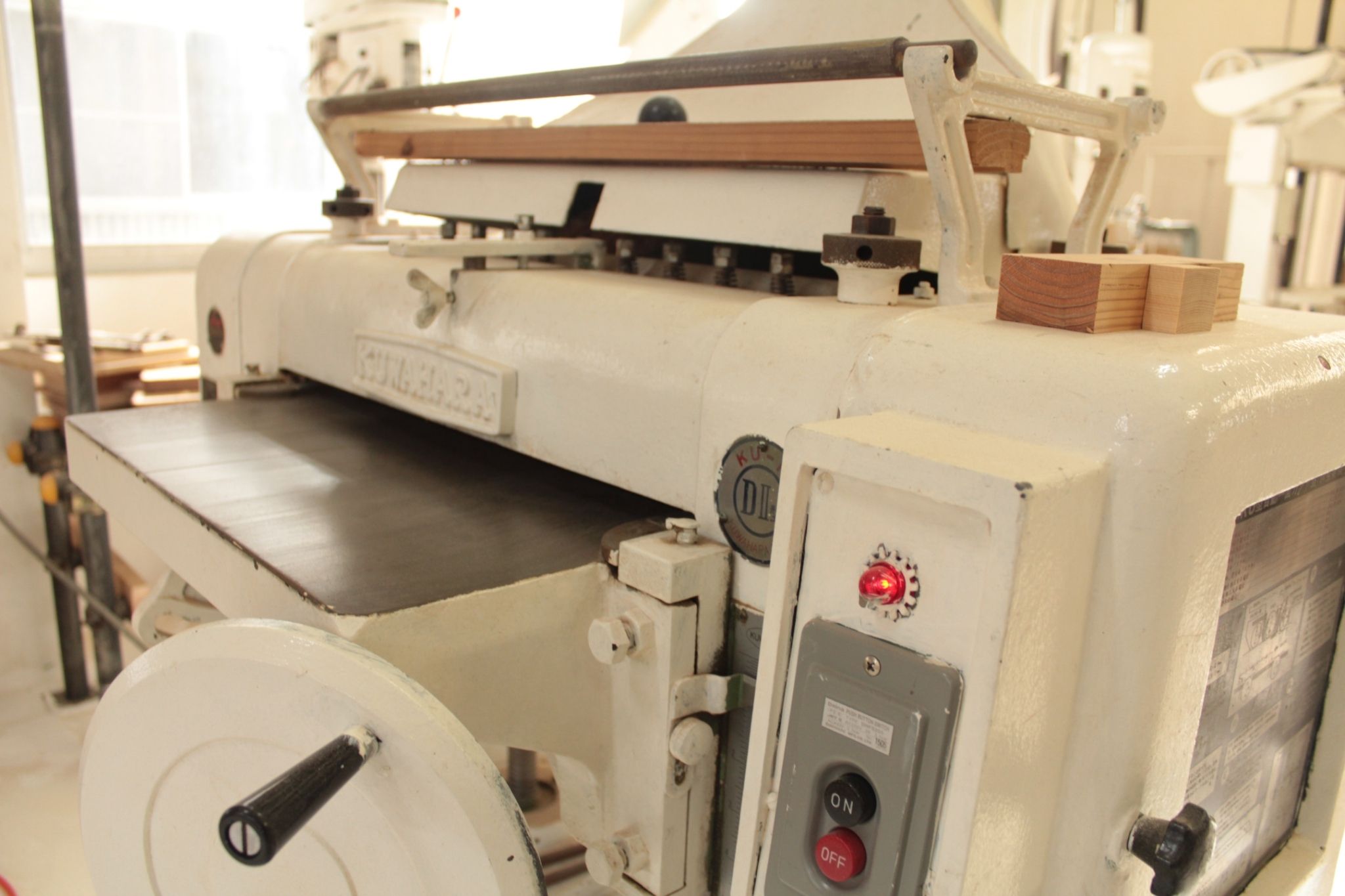 分解で一枚一枚丁寧に取り外した板は、↓のプレナーという鉋(カンナ)の機械に通して、表面をきれいに整えます。