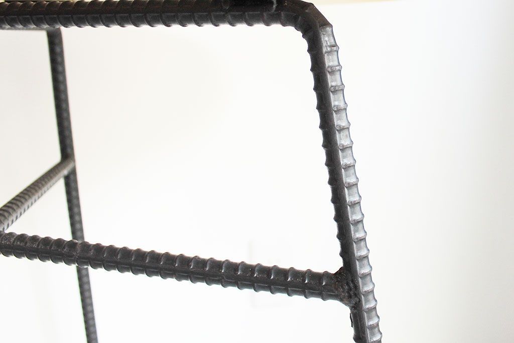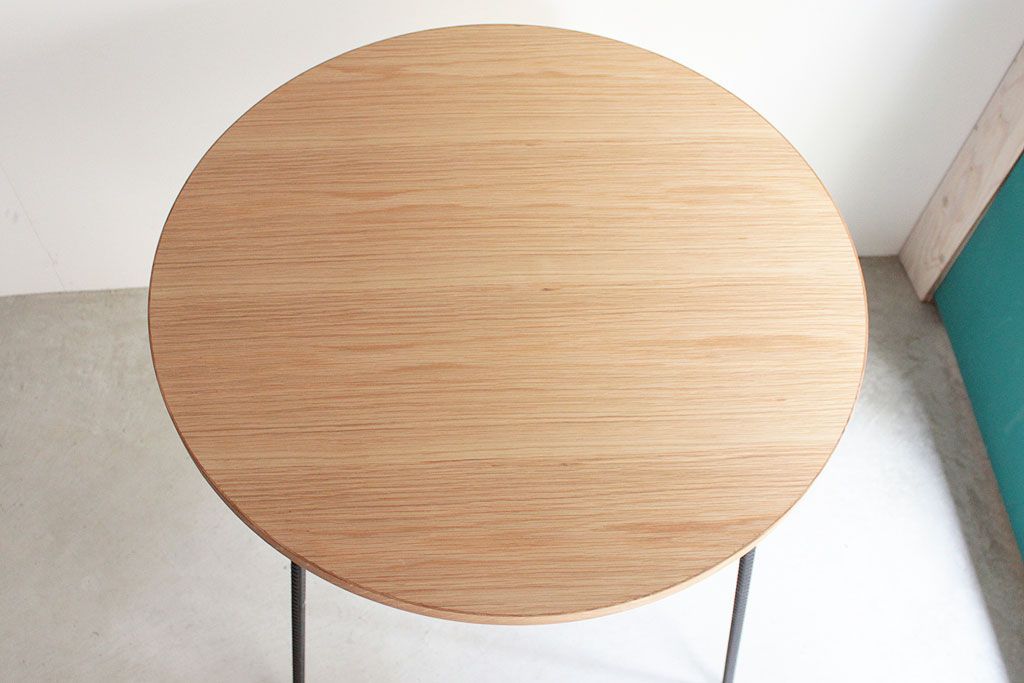 真円の天板に異形鉄鋼の脚がスラリと伸びたスタイリッシュなカフェテーブルです。