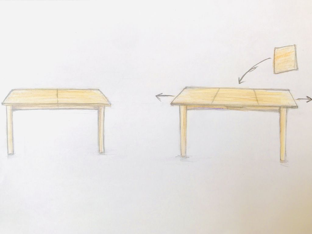 また、リメイクして伸張式にする場合は、もともとのテーブルの構造などによってもどんな方法が合うかは変わってくるのですが、こちらも様々なタイプの伸張式テーブルを作ることができます。