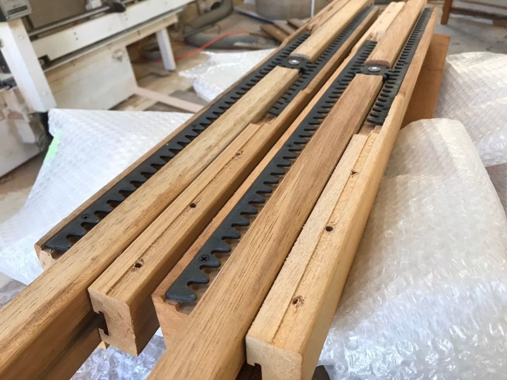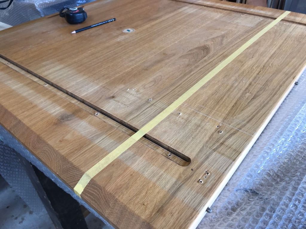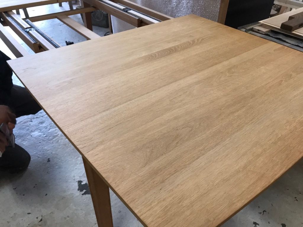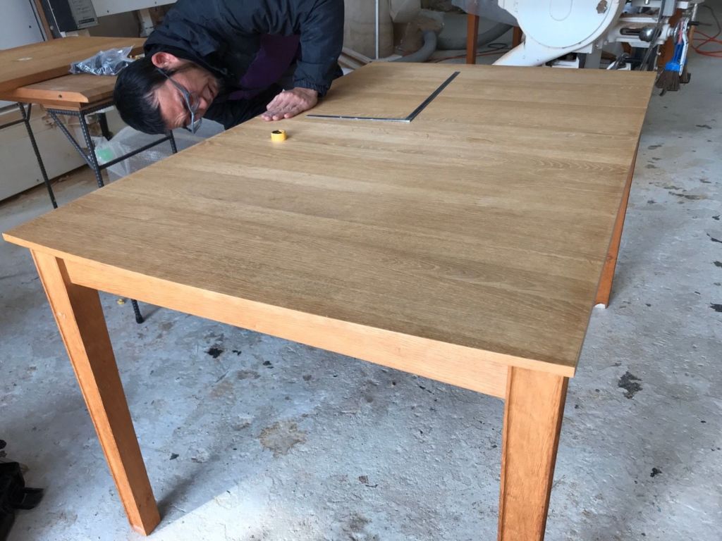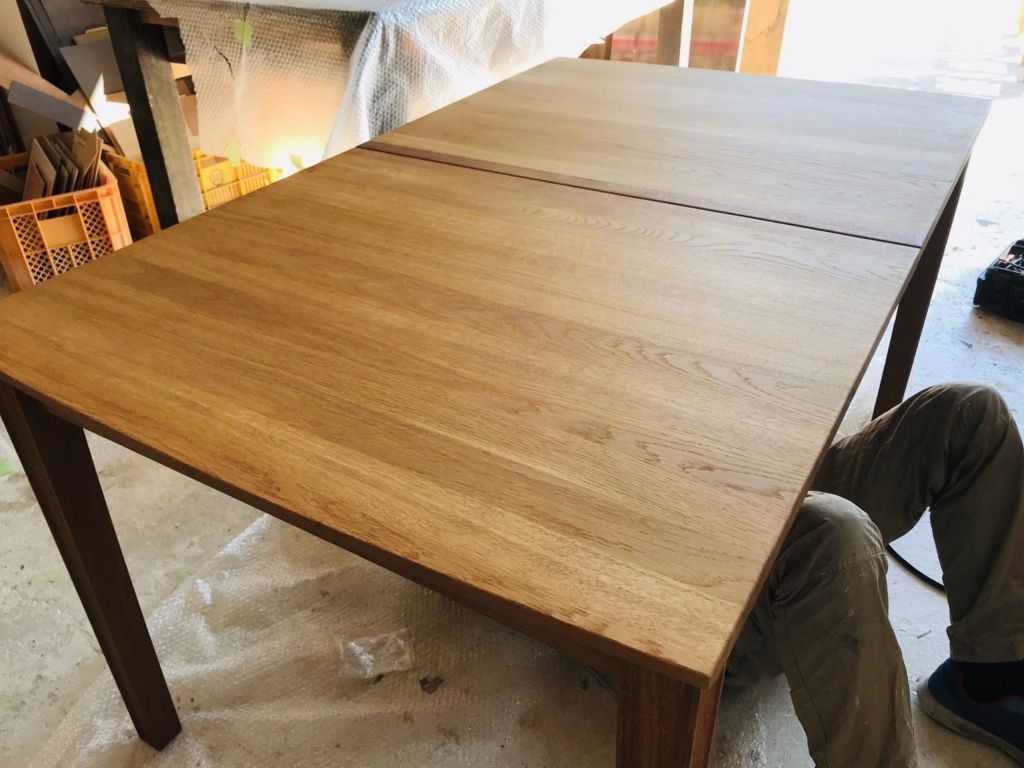 エクステンションテーブル(必要な時に天板を拡張できるテーブル)なので天板が一枚の板ではなく写真のように分割しています。