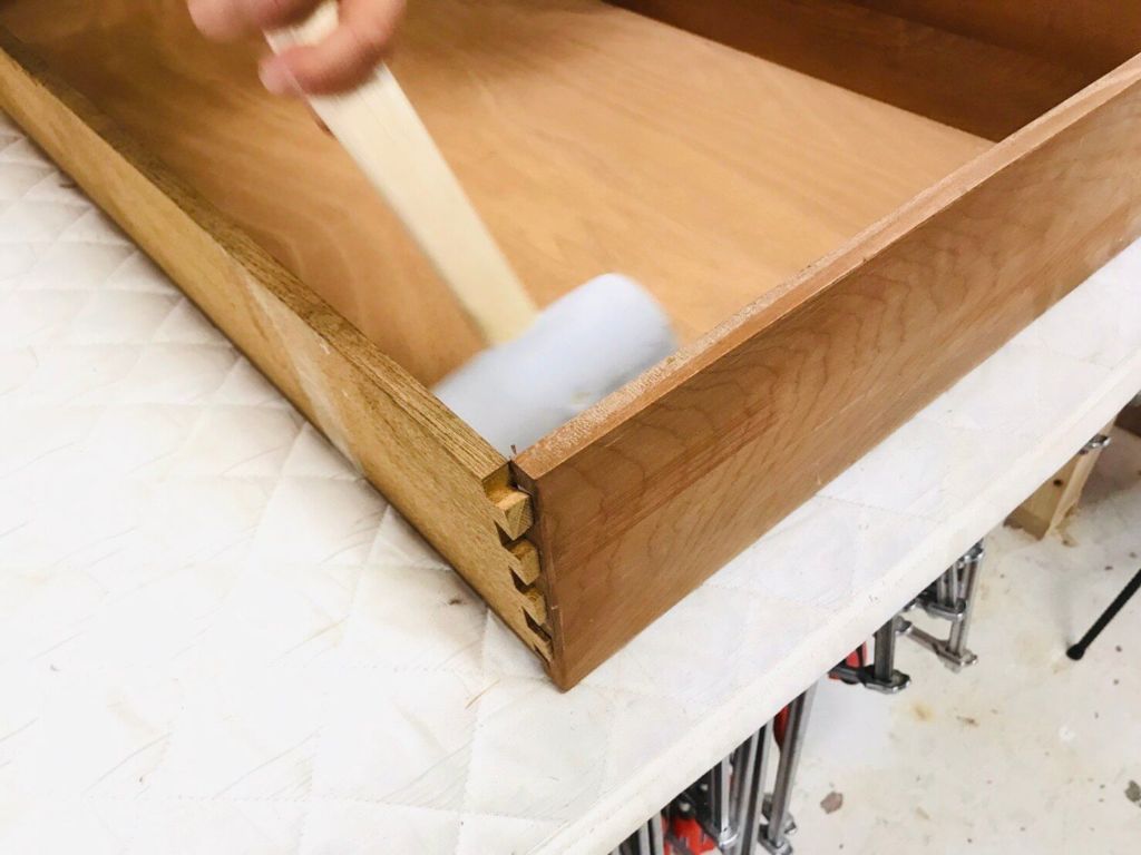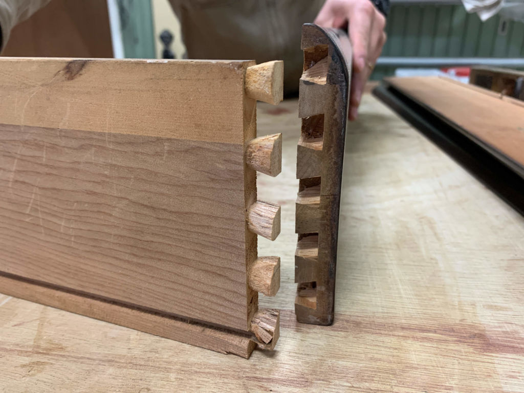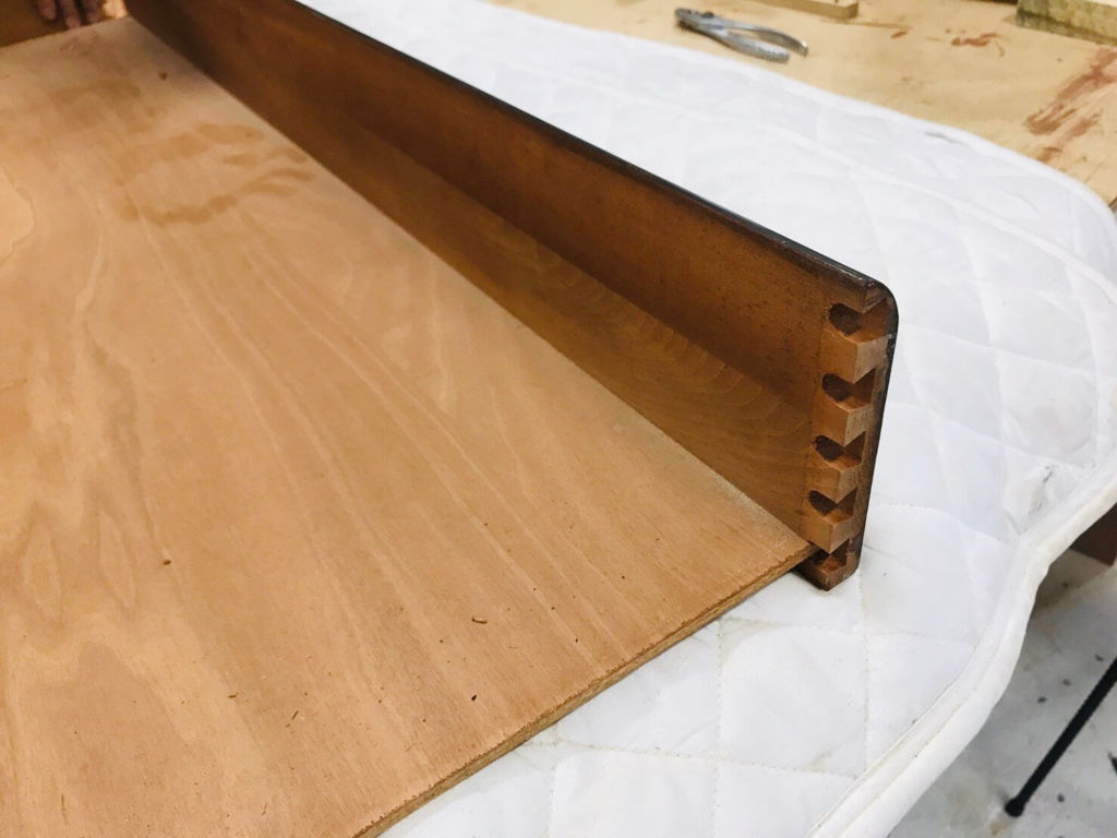 今回分解した引き出しは蟻組み継ぎという継ぎ方で組まれていたのですが