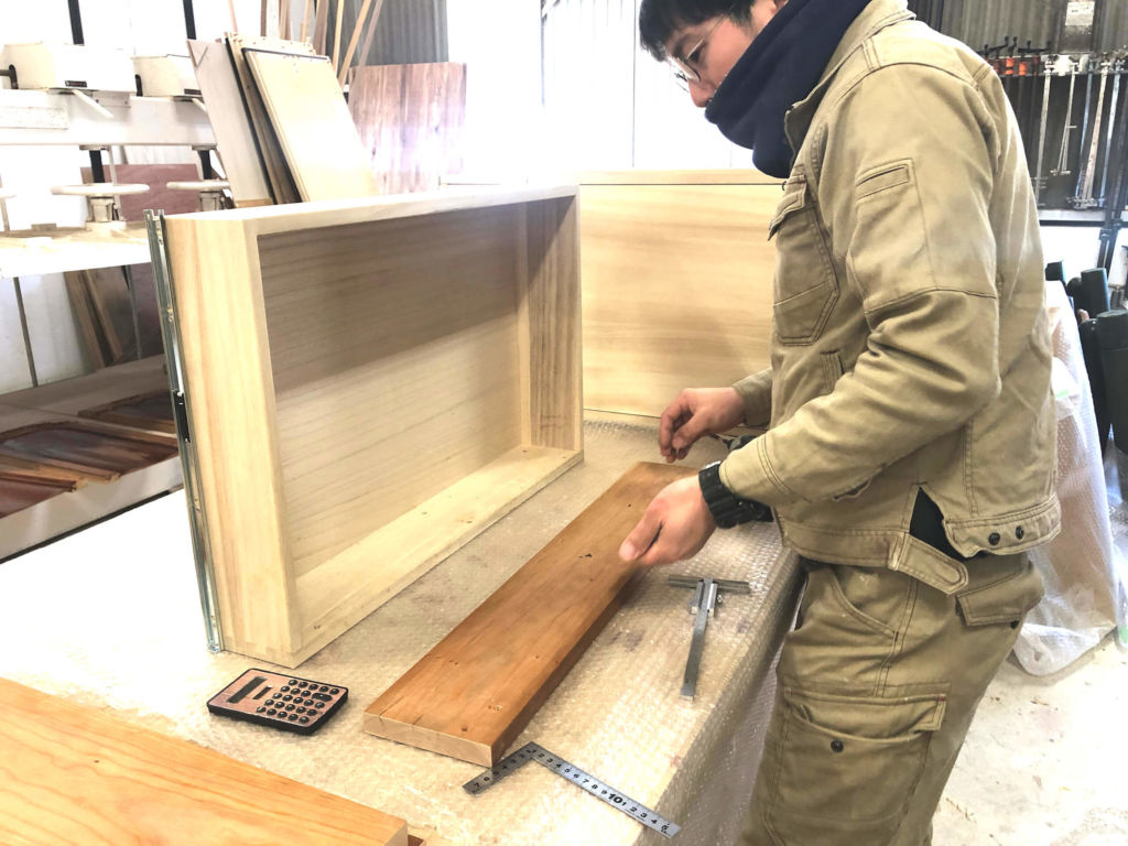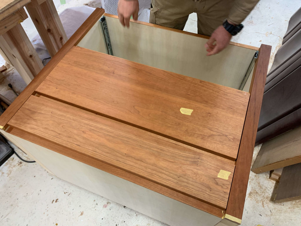 こうして引き出しも完成していき、前回登場した引出し本体に入れ込んでいきます。