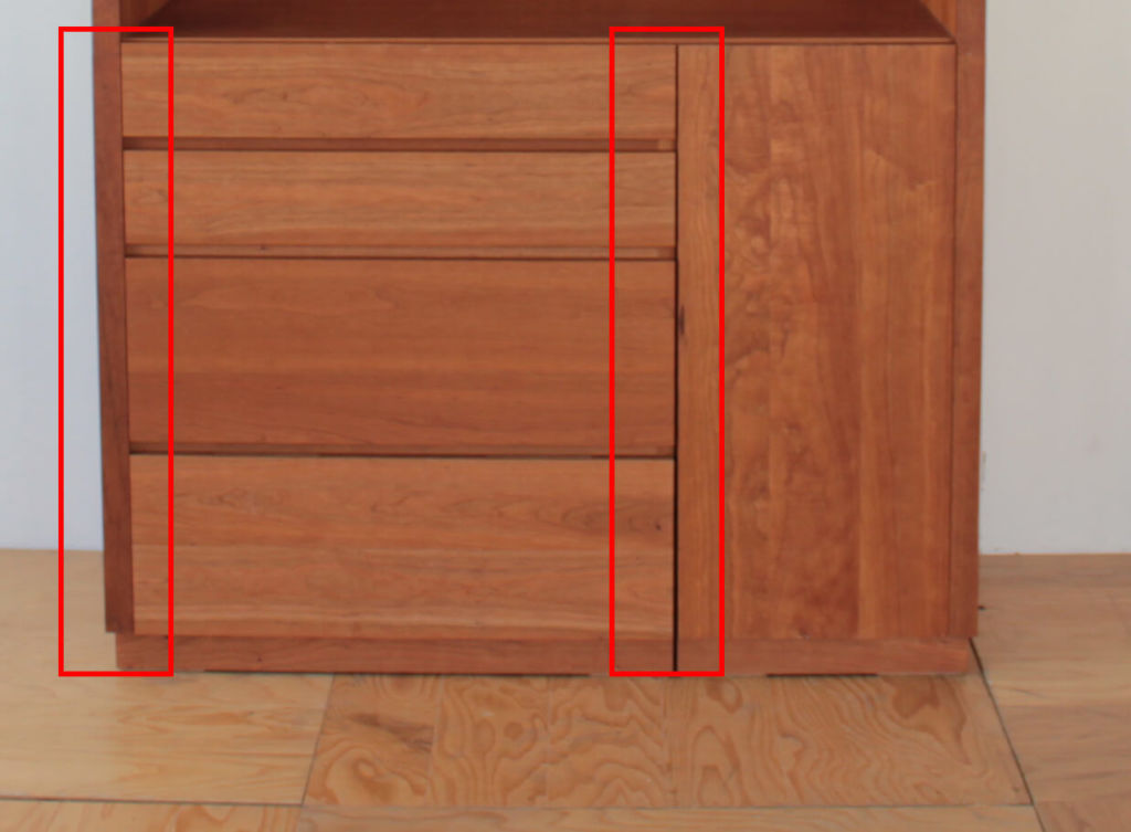 ↑リメイク前の引き出しの前板は片側(向かって左)はインセット、もう片方は被せという仕様になっていたんですが、