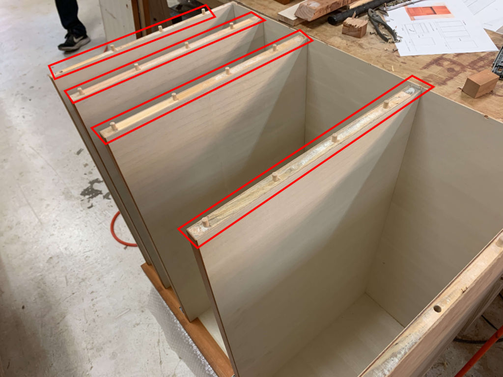 先程分解した断面をよーく見ると赤枠のところにダボが埋められていますよね。