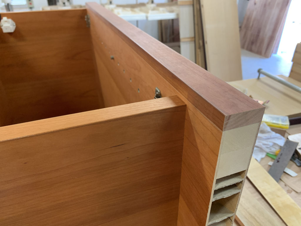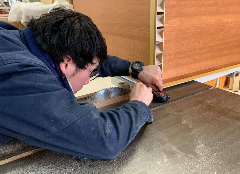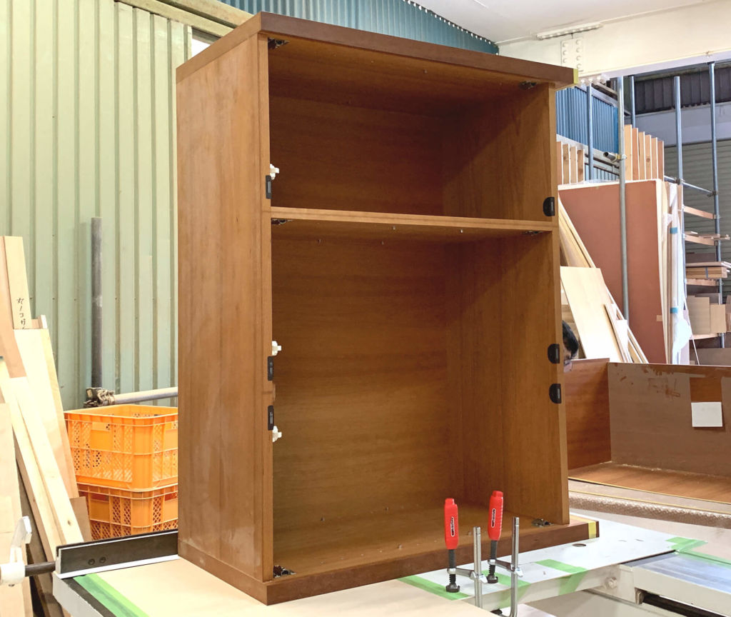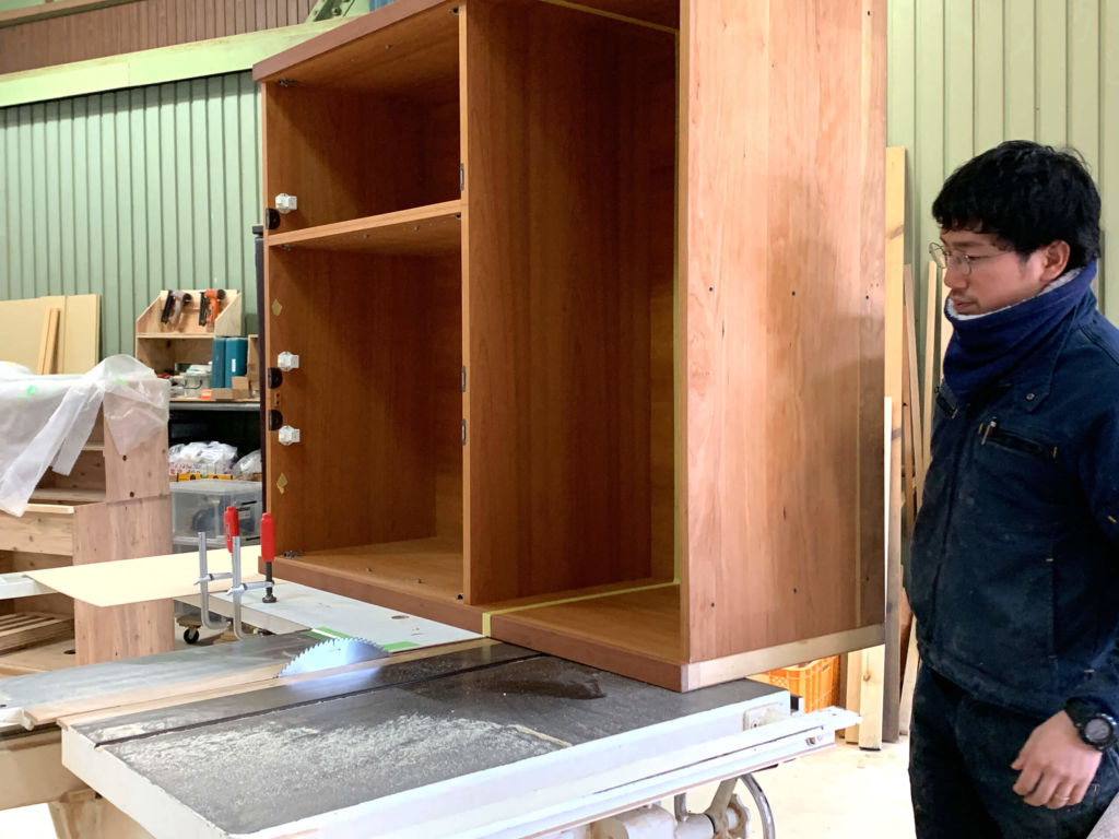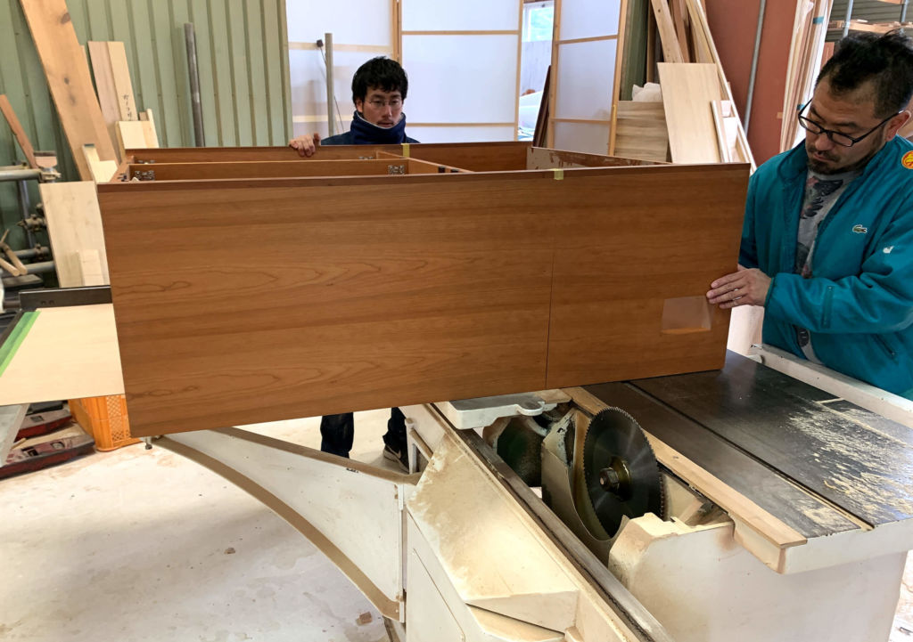 もちろん化粧板だけだと薄すぎるので、中に合板を用いて加工しています。