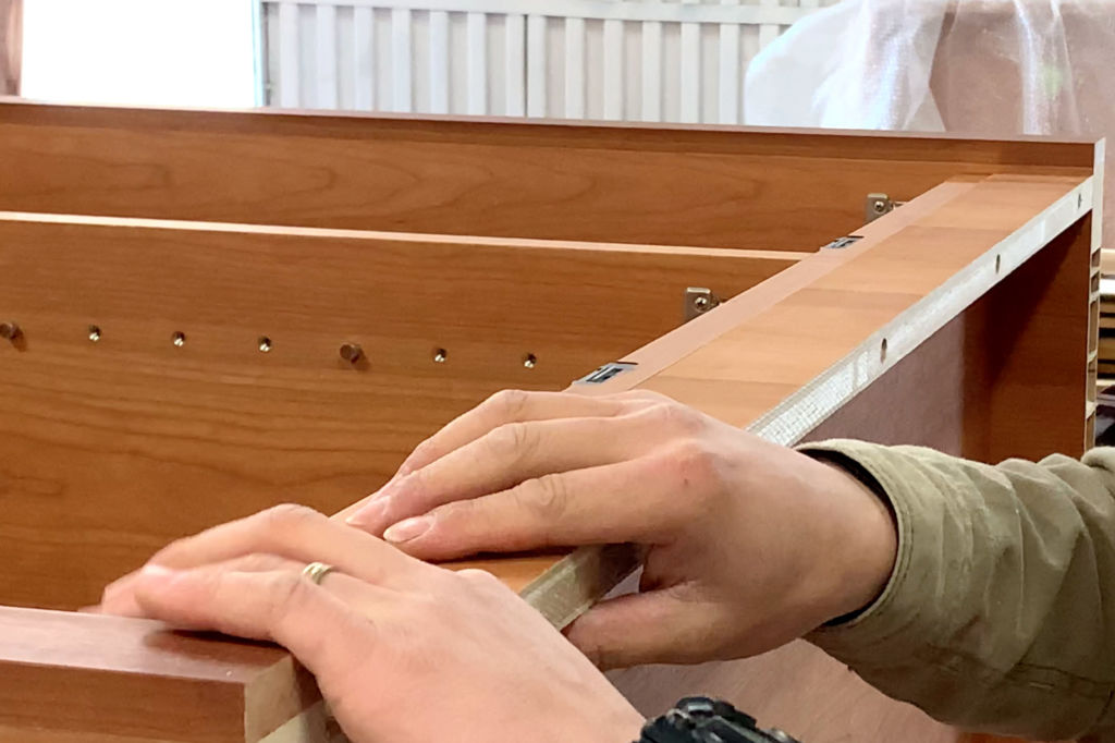一見リメイク前の家具から切り離しただけのようにも見えますが、こうして作業の様子を見ていると切り離す作業にもかなりの時間と労力がかかっているのが分かりますよね。