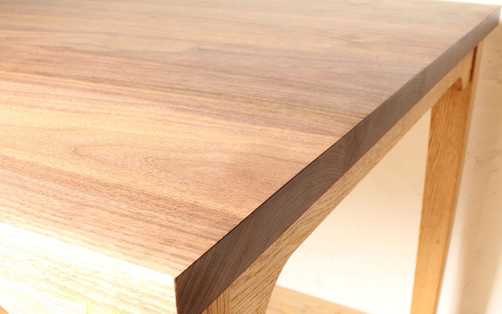 突き板とは天然木を薄くスライスしたシートで、突き板のテーブルは土台となる芯材の表面にそのシートを貼ったものになります。