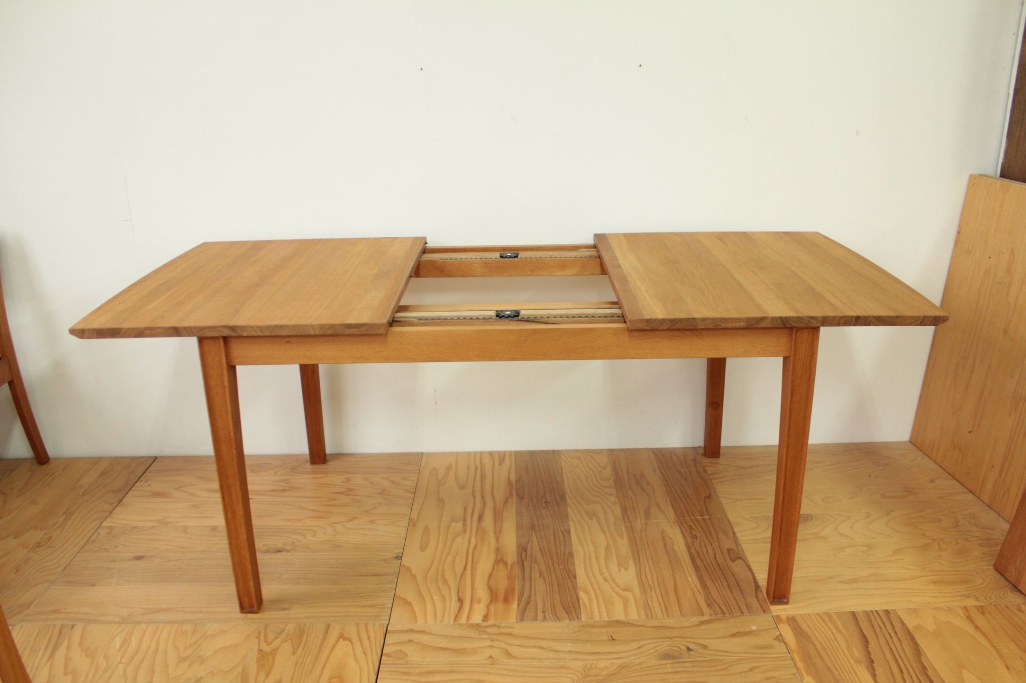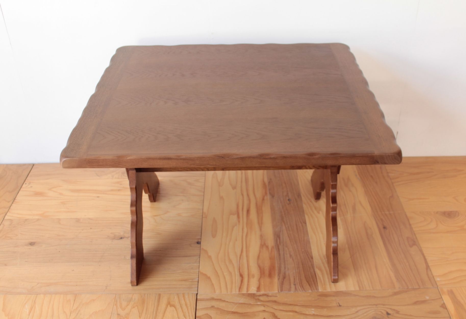 こちらのチーク材のダイニングテーブルを、延長用天板を外した正方形サイズにリメイク!
