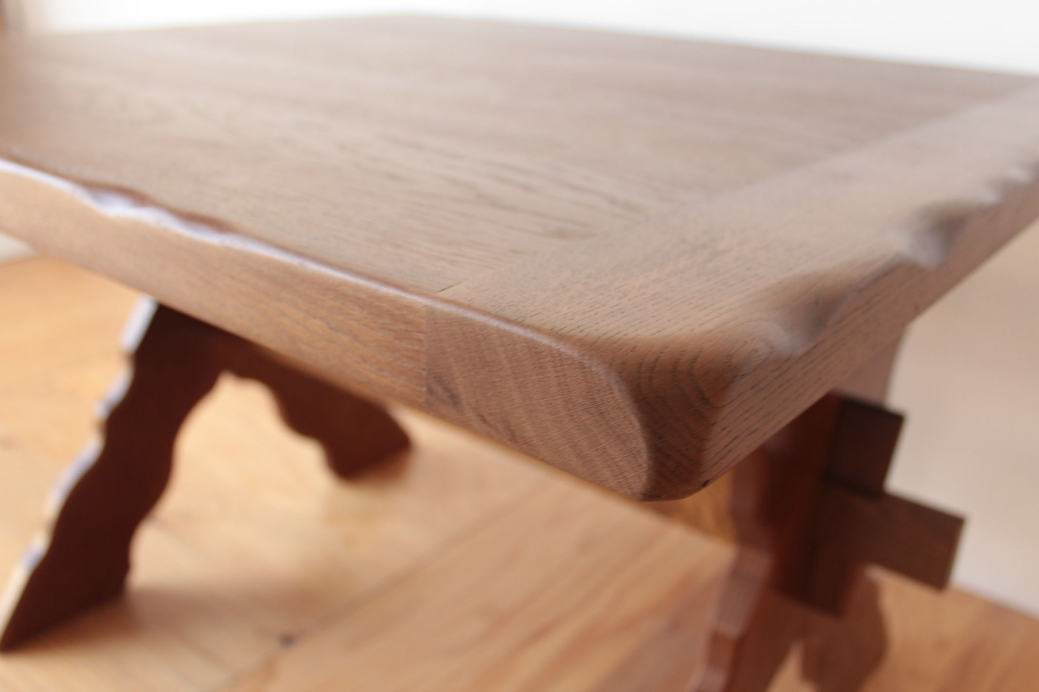 両端の無垢のオーク材を切り離し、中央部分のサイズを小さくして再び両端の無垢オーク材を接ぎ合わせることで、元の雰囲気はそのままサイズのみ小さくリメイクできます。