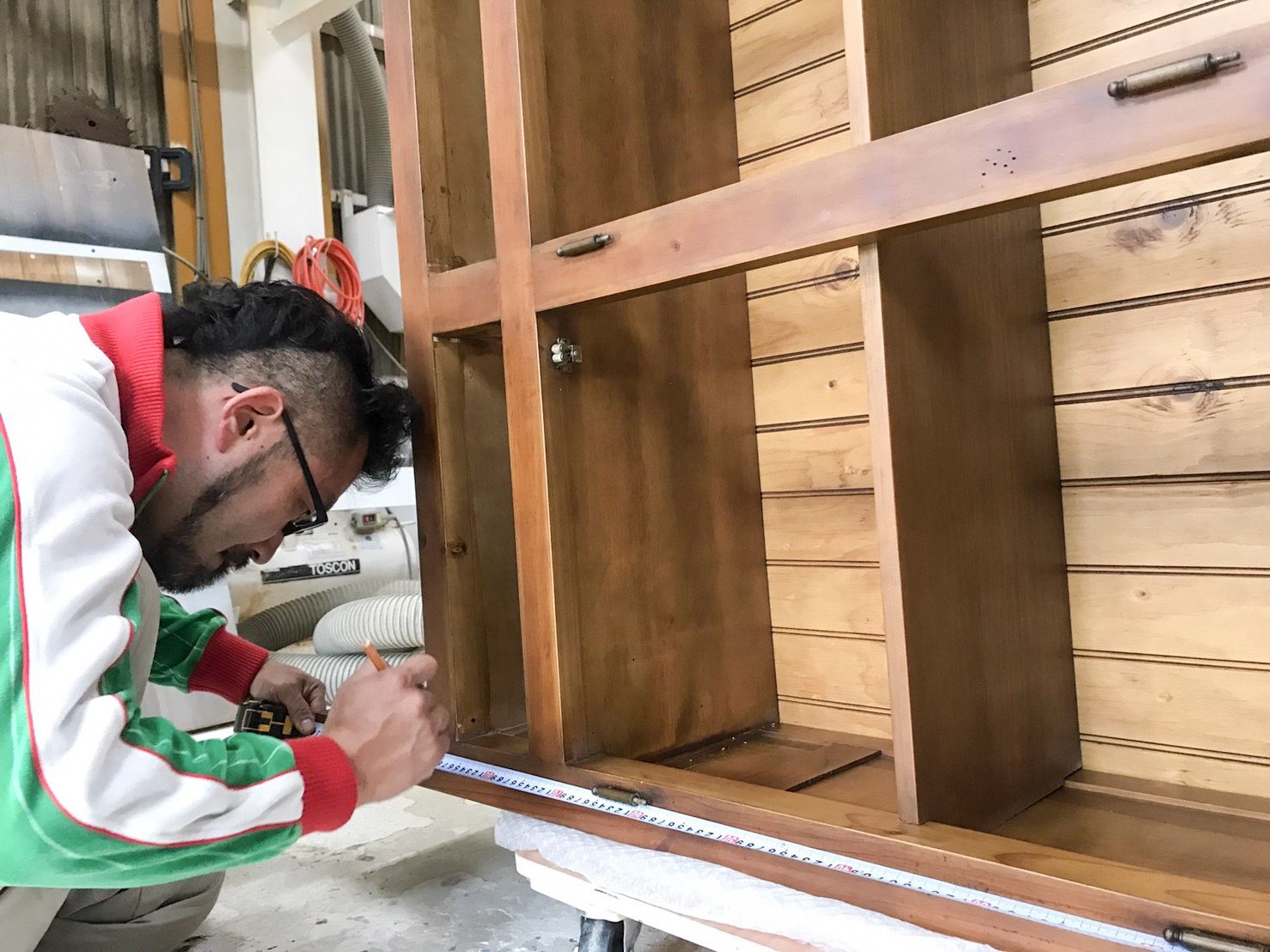 食器棚のような箱物家具は、側板などがフラッシュ構造と呼ばれる中空の構造になっていることも多く、カットしてそのままでは強度が弱くなってしまうこともあります。その場合は補強も必要になります。