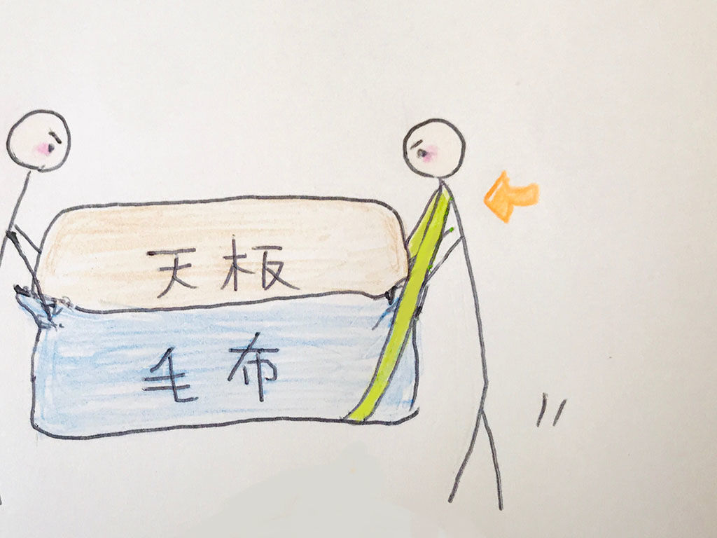 重い天板を搬出する時は、天板を梱包した後、毛布で包んで毛布の両端を手で掴んで運んでいきます。