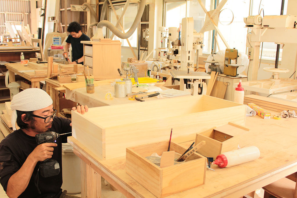 家具の製作を担当する淡路島工房のスタッフたちは、雨にも負けず風にも負けず、毎日真摯に家具に向き合っています。