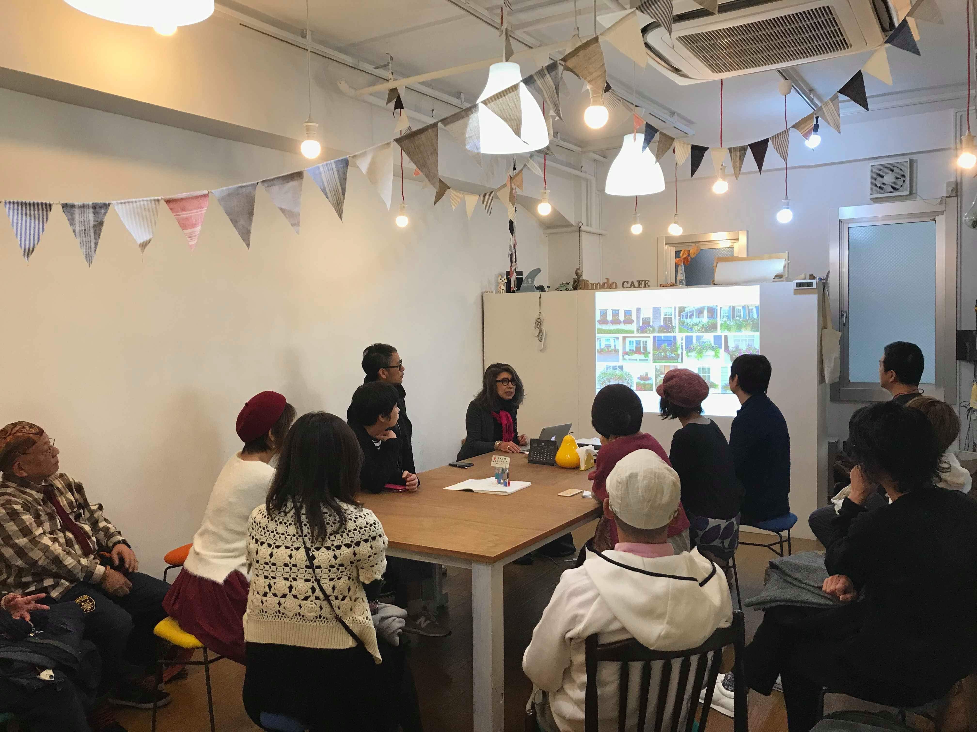 「このスツールを見た瞬間、独特な色使いに『こんな色の組み合わせもあるんだ~』と驚きを覚えました。すごく新鮮。先ほど河合さんが『言葉にしなくてもやっていることがお客さんにパッと伝わるような場にしたい』と仰っていましたが、何て言えばいいんでしょうか・・・このトキメキが、「不完全を楽しむ」とか「多種多様な人が集まる」とか、言葉にするよりも空気を通して伝染するように感じます!」