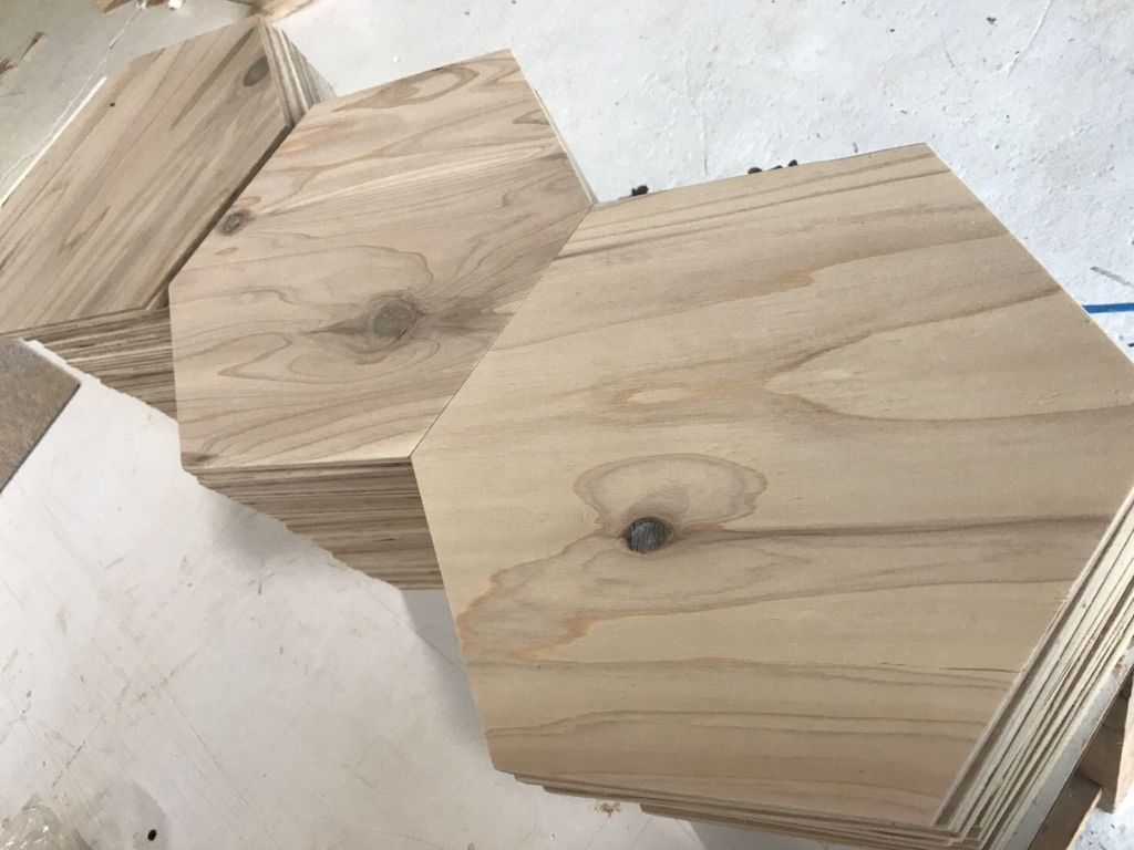 六角形のウッドタイル!今想定している価格は¥500/枚です。つくるのなかなか手間もかかるので、もう少し高くなるかもしれません。そんな六角形のウッドタイルを!