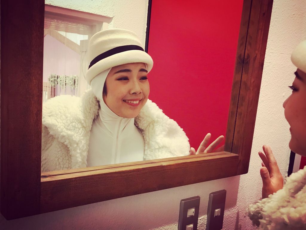 鏡の日に白タイツでWFM(大きな無垢の木の鏡)に問いかけてみた…