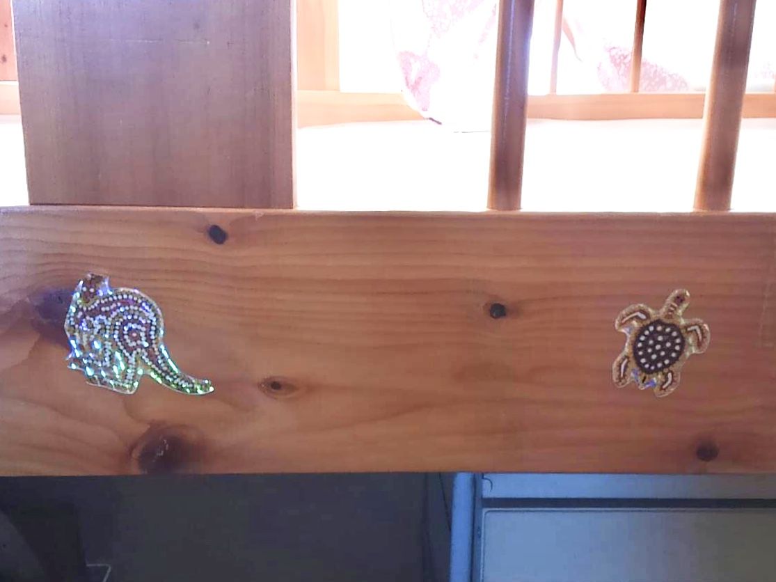 でも、実家のベッドは小学生の頃から使っていて(さらに上からのお下がりで)、だいぶ色々施されていました。