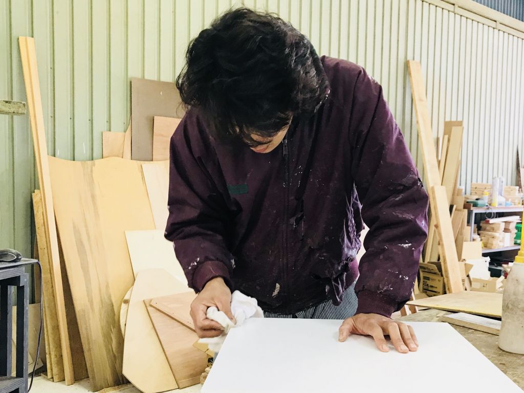 お客さまへ納品するリメイク家具の、仕上げのお掃除をしたり、