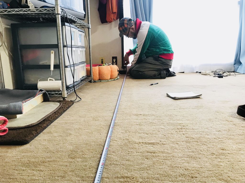 今回は、こちらのお部屋の壁いっぱいに、テレビボードを作ることになりましたよーっ!