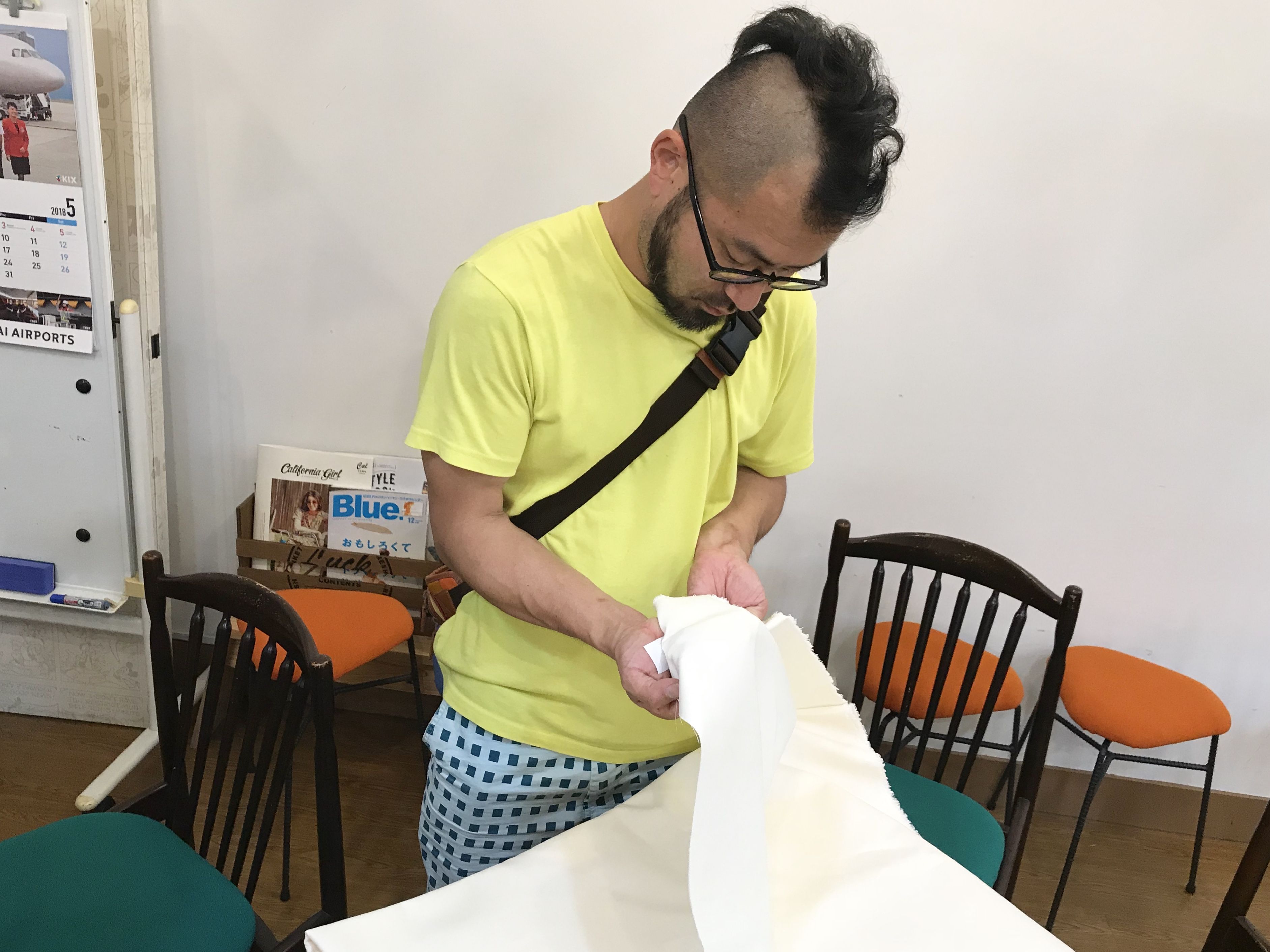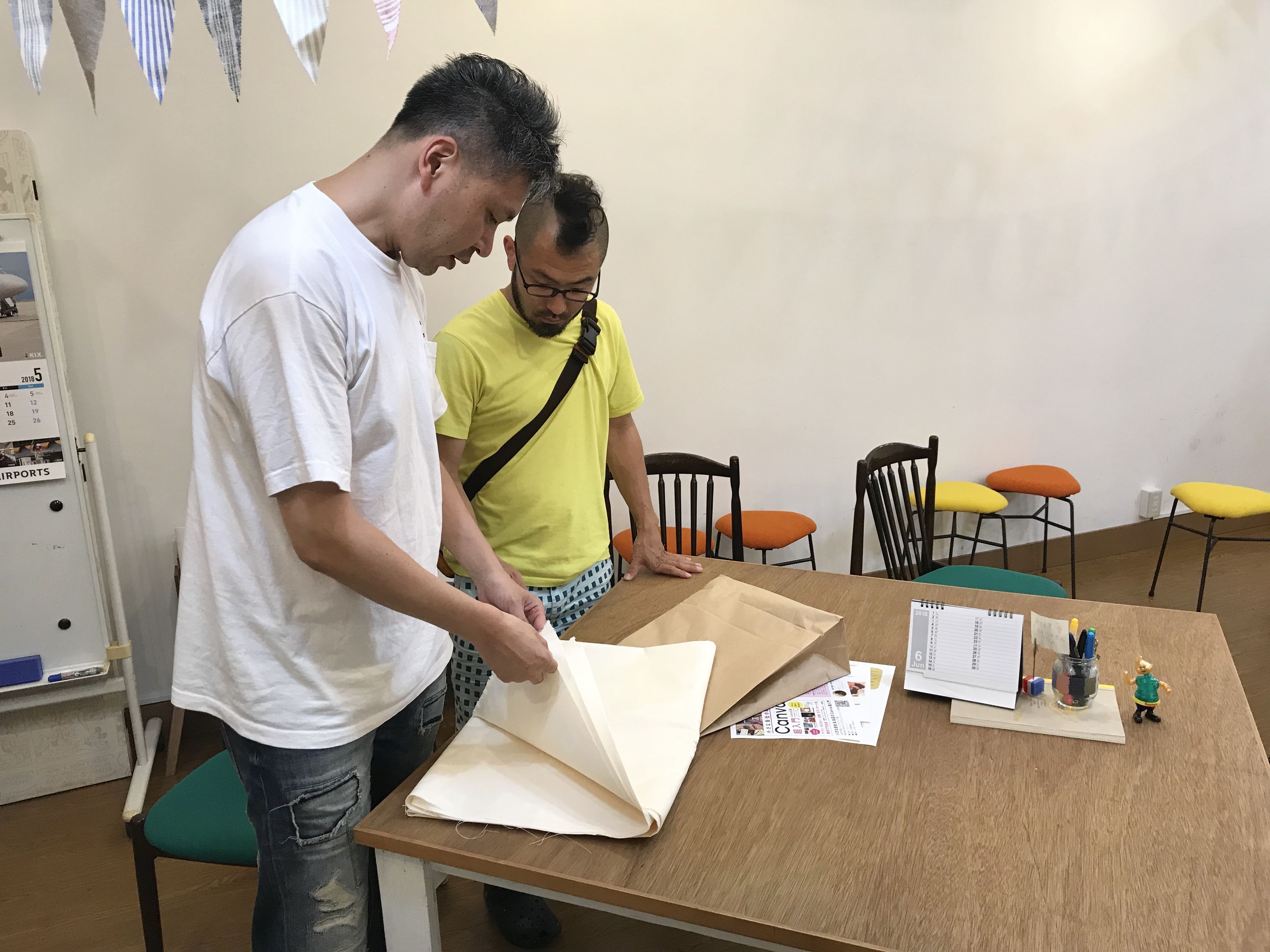と、河合さんは張り替え用の布をご自身で用意されていました。