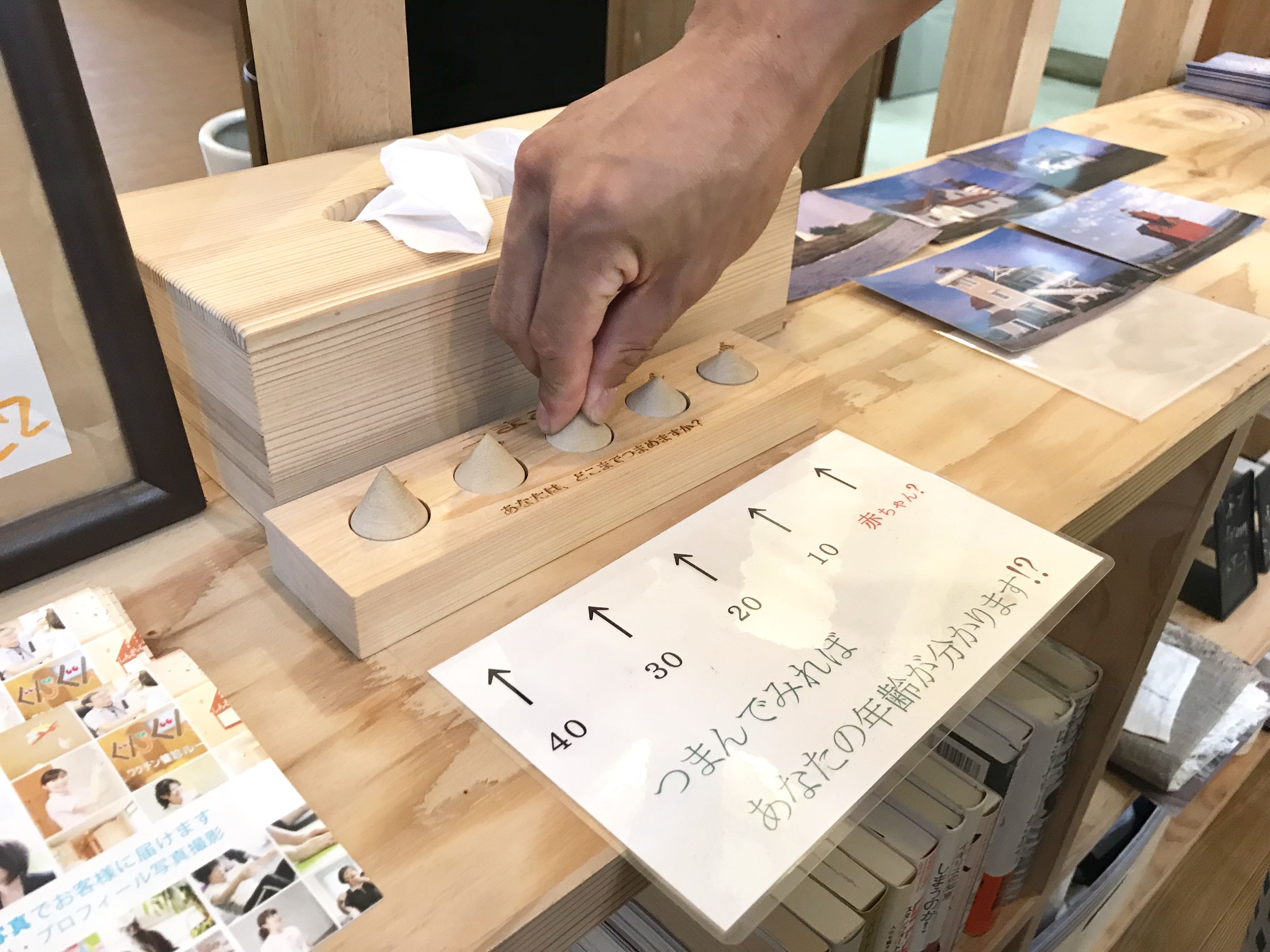 実は、年齢が上がるとともにつまめる円錐の角度って変わってくるらしいんですけど、こちらはそのことを試せるものなんです。