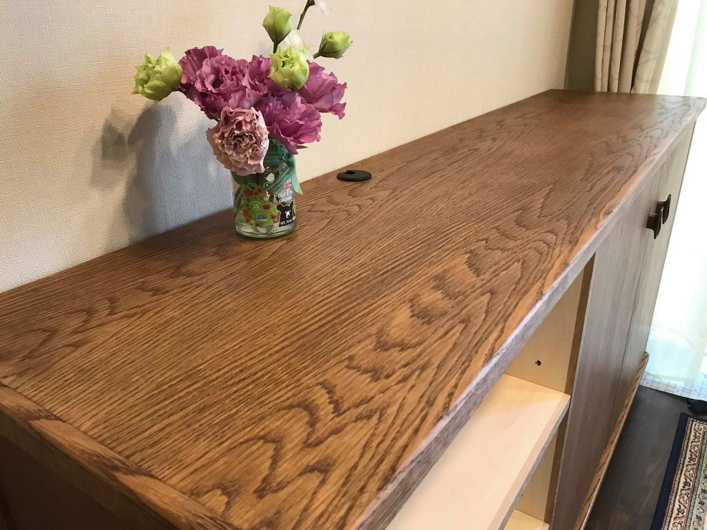 そして、完成した家具をお届けした時、すごく喜んでくださって、さっそくテレビボードにお花を飾ってくださったのが印象的でした。