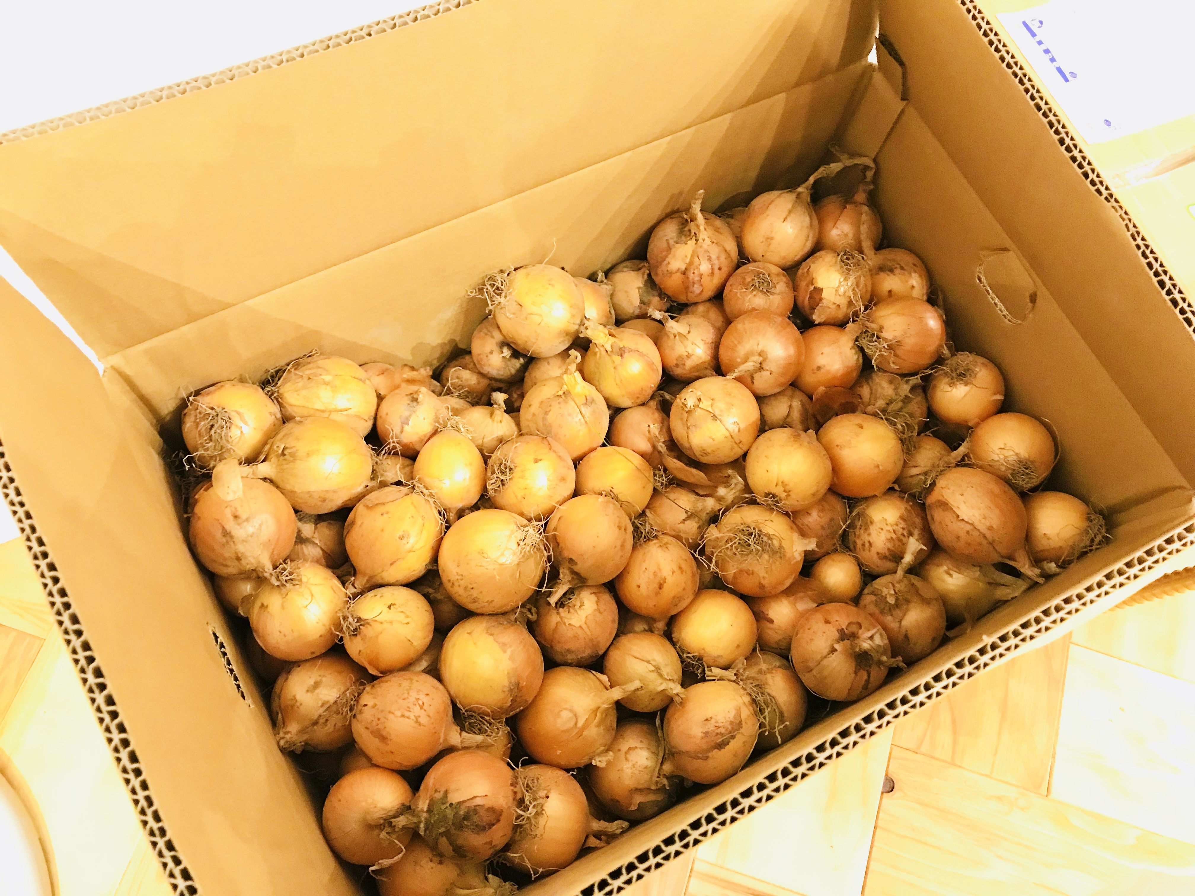 先日ROOTS FACTORYの工房がある淡路島から、タマネギがどっさりと届きました。