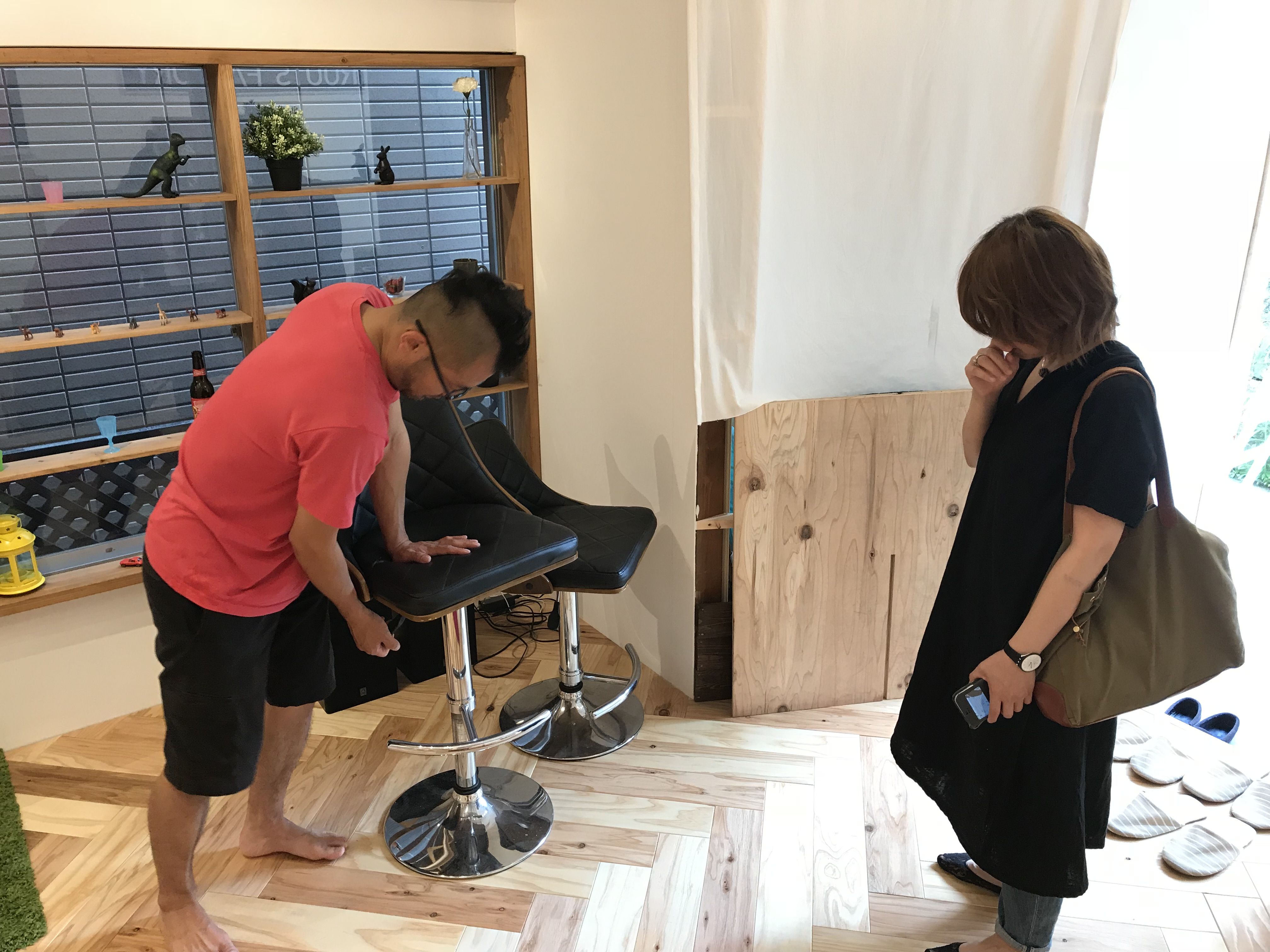 お引き渡しの時は、ちょうど家具作りたいおっさんが東京に来ていて、シンバルのオーナー「チナツ」さんと最終チェックをして、お渡ししました。