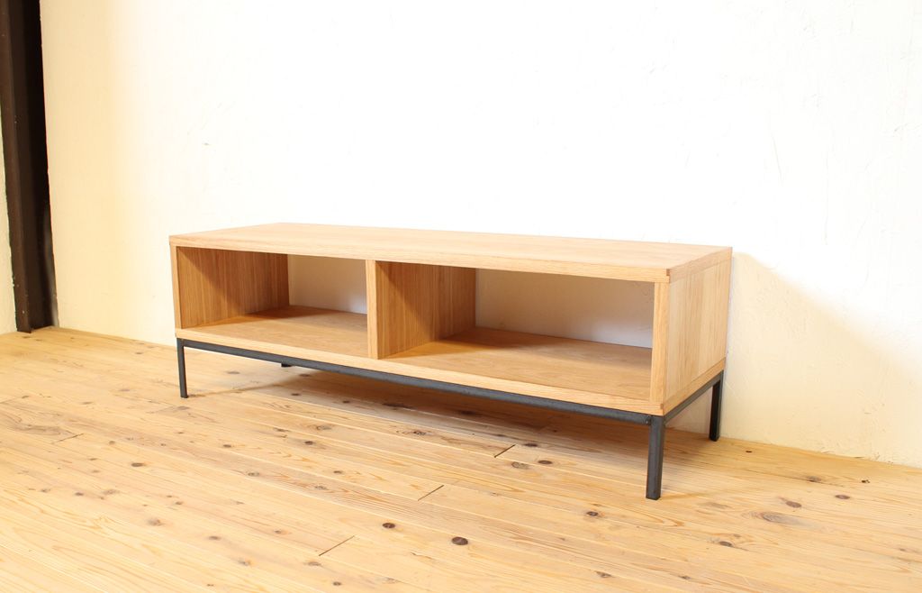 オークとアングルアイアンの組み合わせが無骨でカッコイイ「FJシリーズ」のデザインをベースにした、テレビボードです。